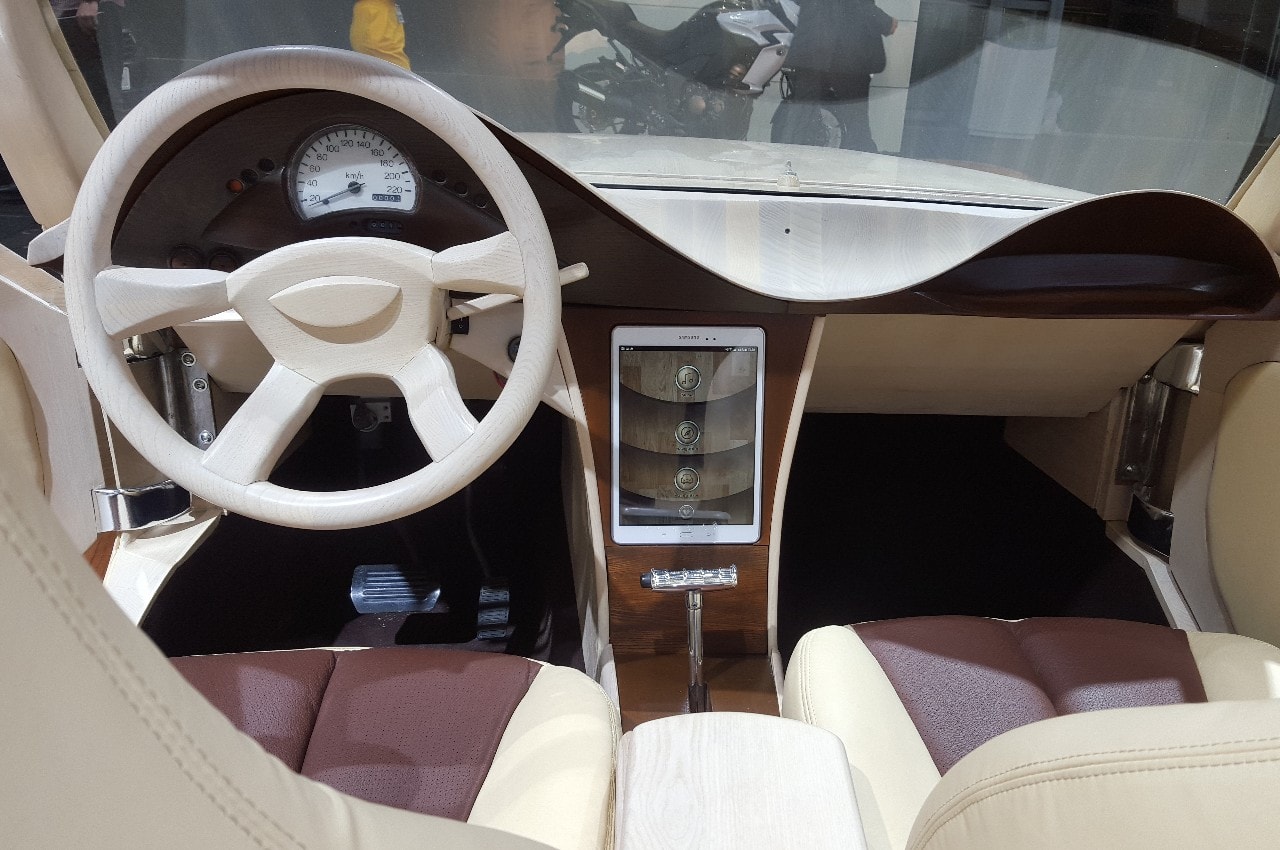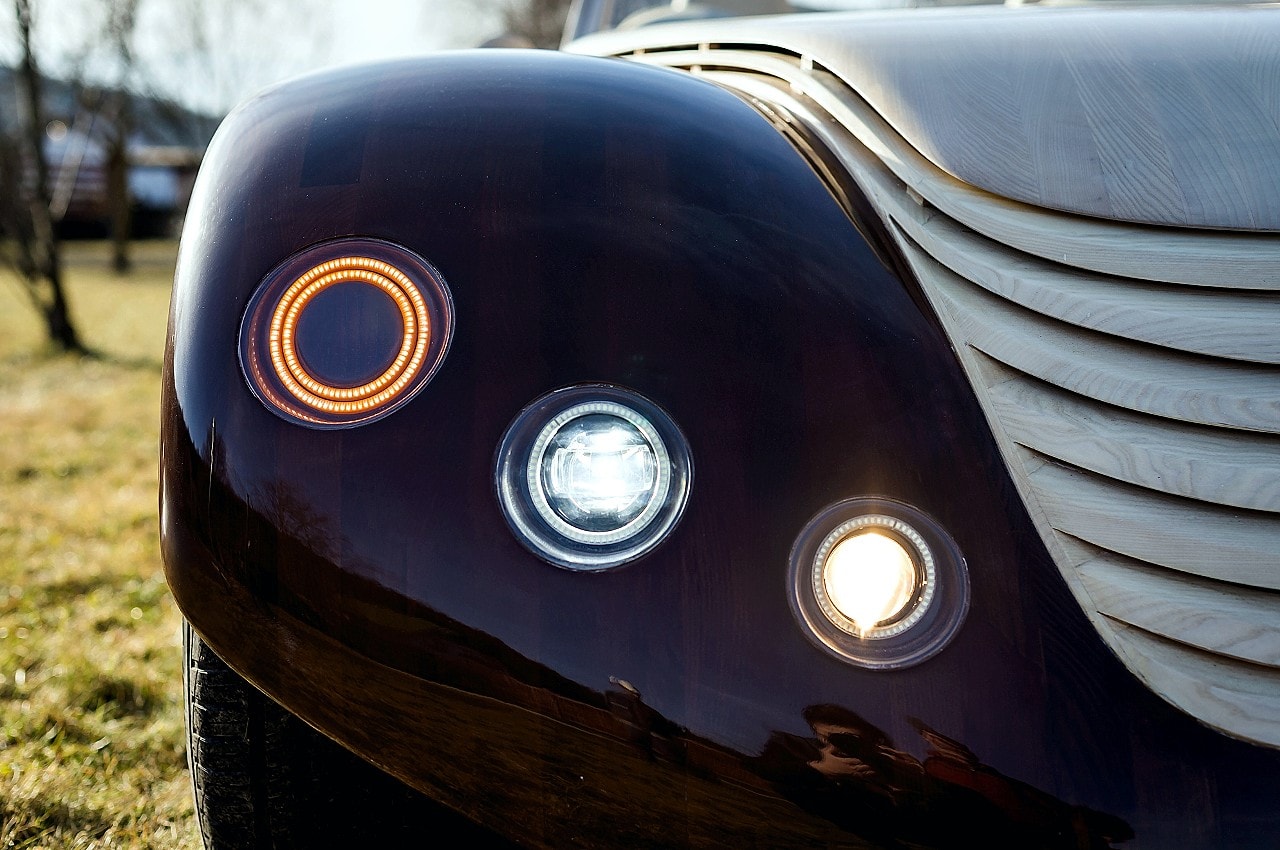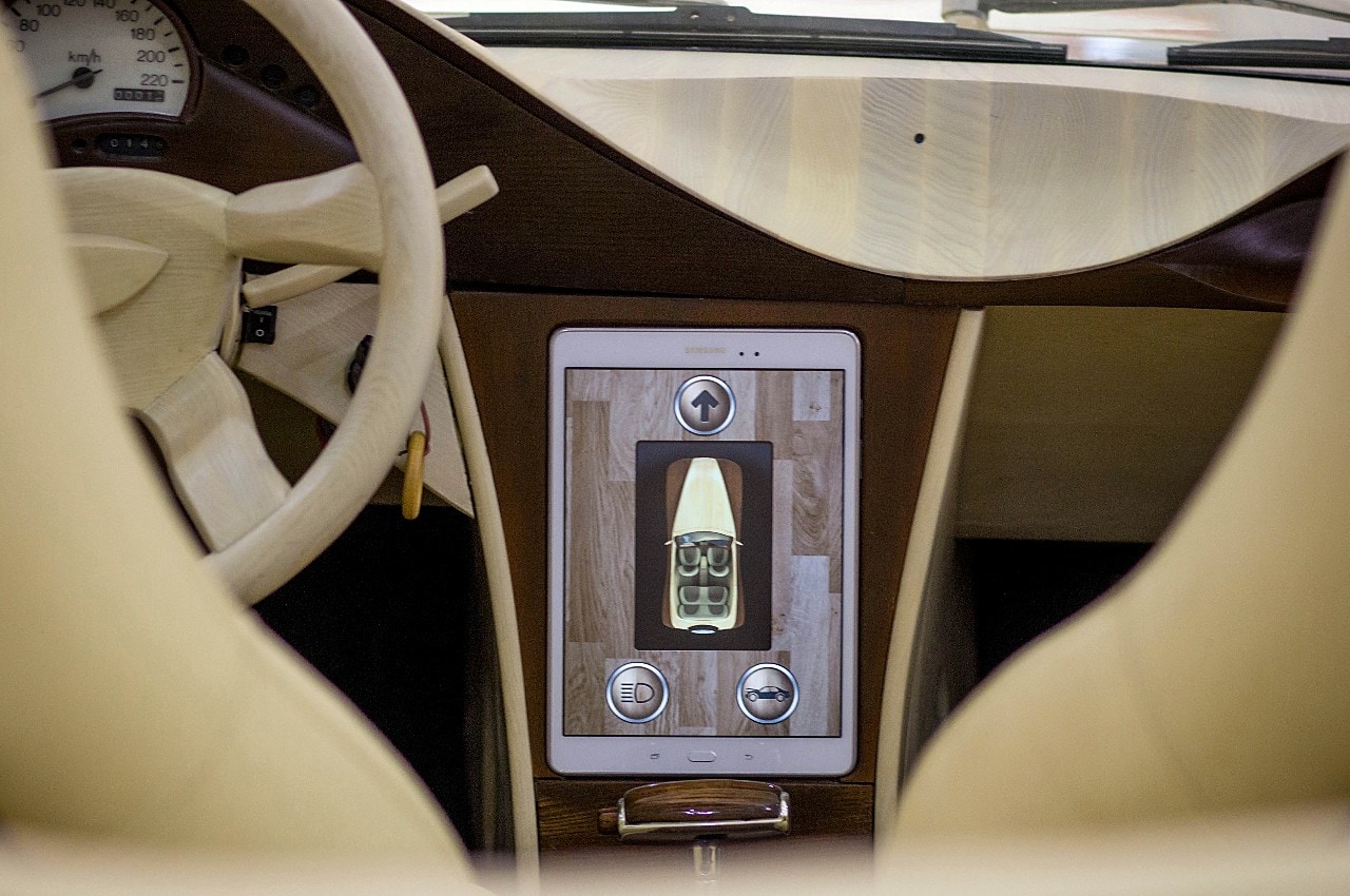Ce véhicule combine les lignes rétro mêlées au style de la vieille école des automobiles classiques Russes, avec des innovations modernes telles que les phares et la musique slave contrôlée par une tablette Samsung.