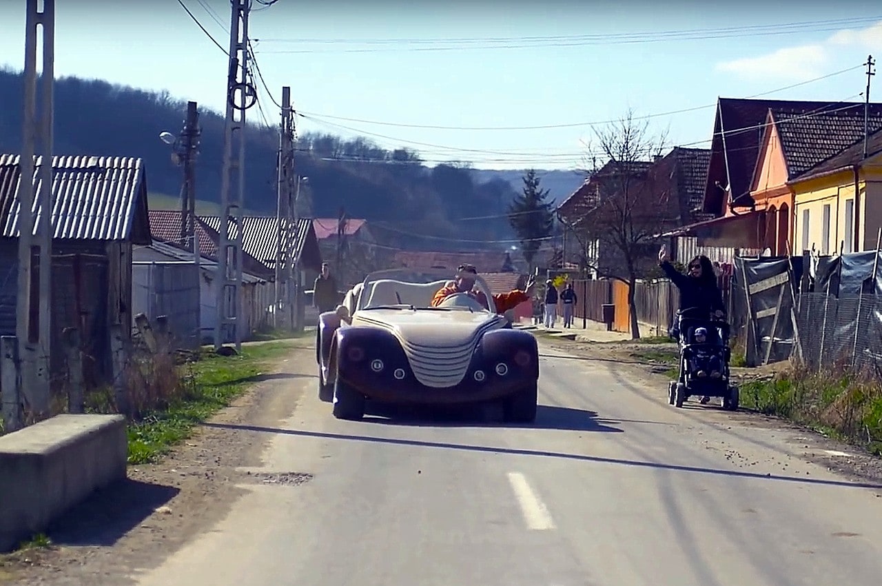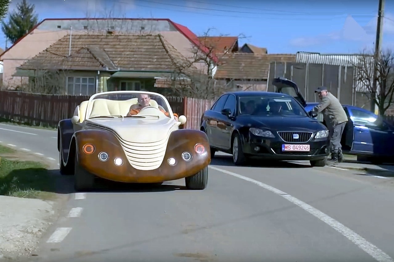 Maintenant, il n’aime rien de mieux que de conduire sa voiture unique autour de son village Roumain…, afin de ressentir les vagues d’admiration de ses voisins.
