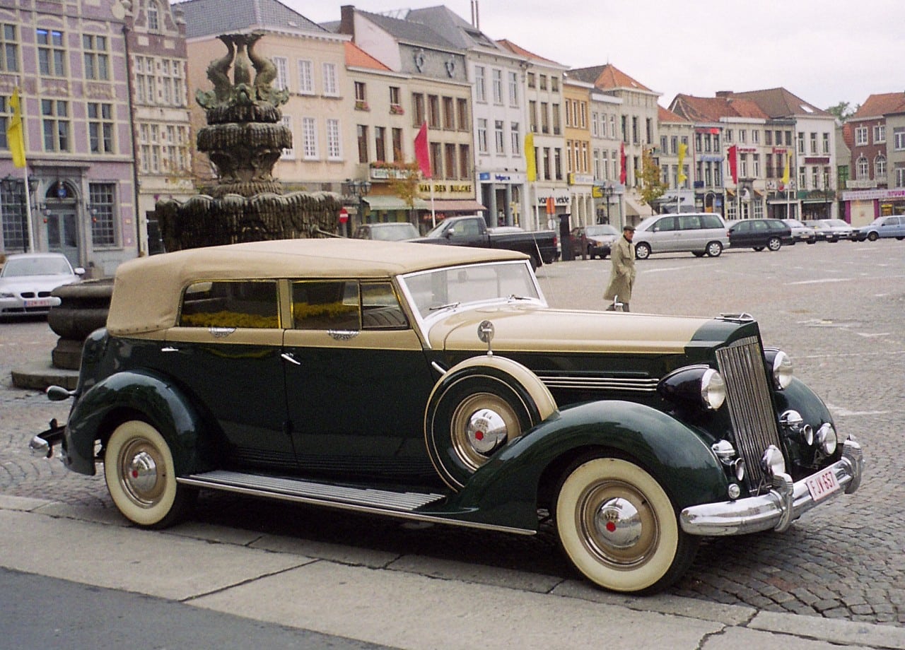 << L’année 1935 est une grande date dans l’histoire de la marque Packard. A l’occasion de la présentation des modèles du millésime 1936, ceux-ci passeront directement de la 12ème à la 14ème série. Par superstition, la direction de la marque décidera en effet de faire l’impasse sur la 13ème série pour ne pas s’attirer de mauvaise fortune. Suivant en cela la même politique que celle pratiquée par la plupart des autres constructeurs américains et qui vient, d’une certaine façon, contredire une croyance pourtant encore tenace affirmant que ceux-ci modifient les lignes de leurs modèles chaque année, les Packard de l’année-modèle 1936 conservent des carrosseries pratiquement identiques à celles du millésime précédent, les changements se limitant au dessin de la grille de calandre, du capot et des ailes, sensiblement remaniées, ainsi que des détails d’aménagement intérieur. A l’époque, les marques américaines ne renouvellent réellement leurs modèles que tous les deux ou trois ans. Chez les constructeurs indépendants, par contre, cela se fait souvent à un rythme moins régulier, ceux-ci n’ayant évidemment pas les mêmes moyens que leurs concurrents. Ce qui explique que les Packard conserveront les mêmes lignes entre 1935 et 1939. Comme il a toutefois été dit, la clientèle de la marque est plutôt conservatrice et se montre plutôt réfractaire à un changement de style trop radical, d’autant que le style adopté par Packard en 1935 continuera jusqu’à la fin d’être plébiscité par ses clients. Ainsi, de plus de 80.000 exemplaires en 1936, elle franchira, l’année suivante, la barre (hautement symbolique) des 100.000 unités (109.518 voitures produites, très exactement), ce qui permet à Packard de se hisser à la neuvième place des constructeurs américains, la marque occupait la 15ème place au début de la décennie)>>.