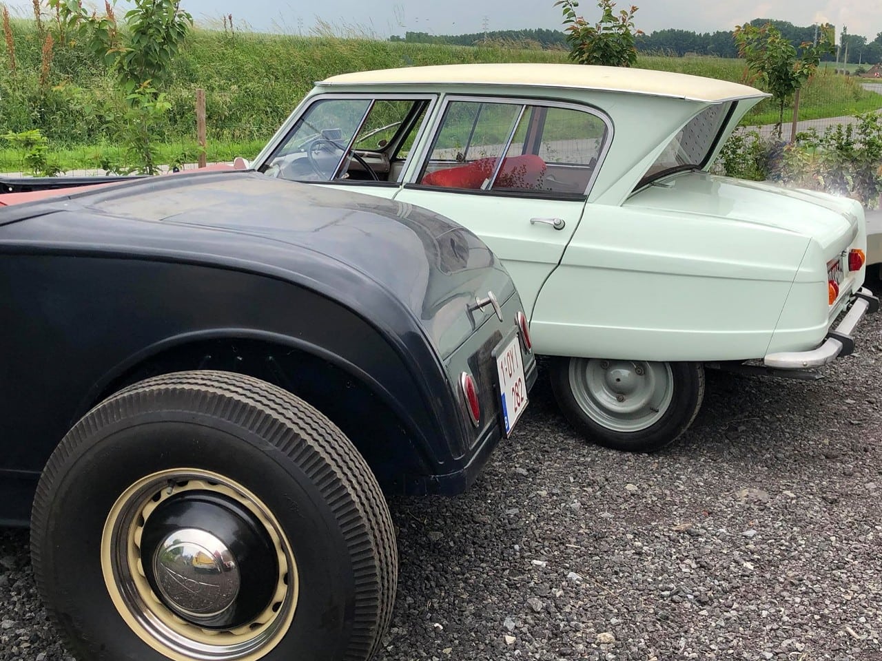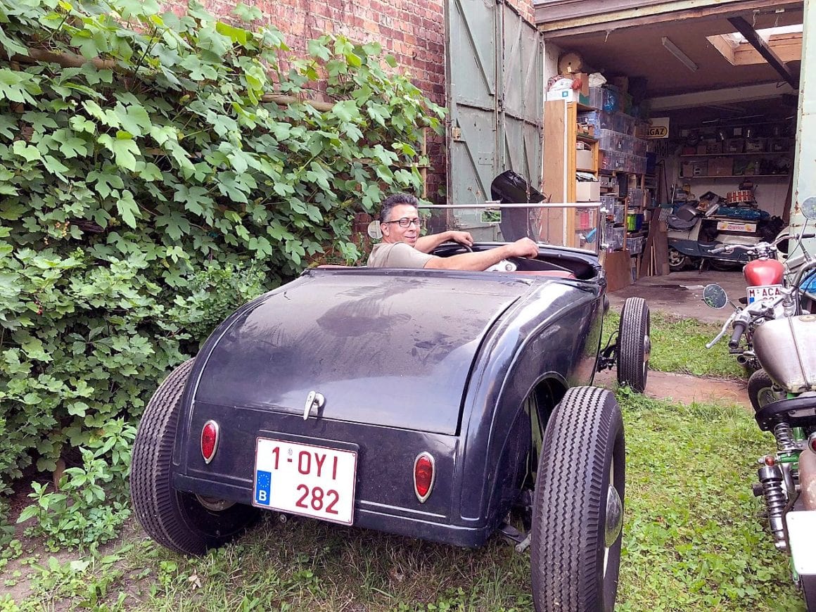– C’est un Ford’32 en tôle immatriculé en Belgique. Je suis allé, avant de l’acheter, au Contrôle Technique demander s’il y aurait une raison de ne pas pouvoir l’immatriculer…
