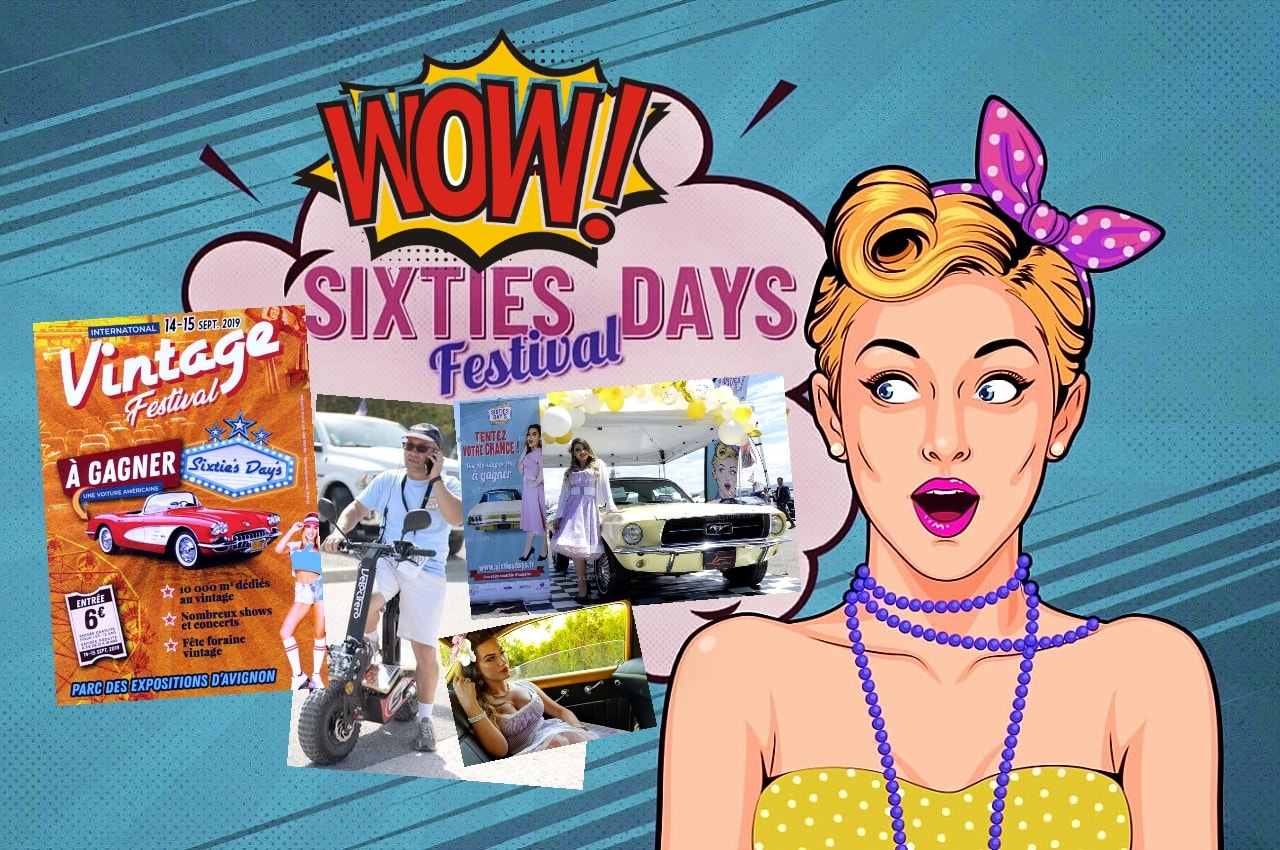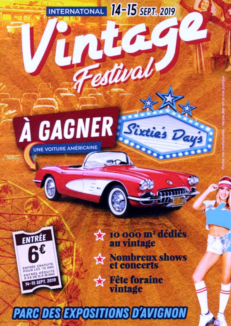 Légèreté, insouciance, pin-up, belles carrosseries, drive-in, ciné en plein air, hamburgers, rock, swing, robes virevoltantes, talons hauts et gomina… wouahhhhhh, ne rêvez pas, c’est bien ce qui devait vous attendre le week-end des 14 et 15 septembre 2019 , au Parc des expositions de Châteaublanc/Avignon…, une plongée dans le rêve américain des années ’50 et ’70, un véritable voyage dans le temps proposé par le festival Sixties day’s, premier du nom dans la cité des papes… yeahhhhhh, Rock’and’Roll attitude !