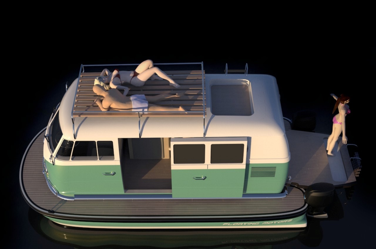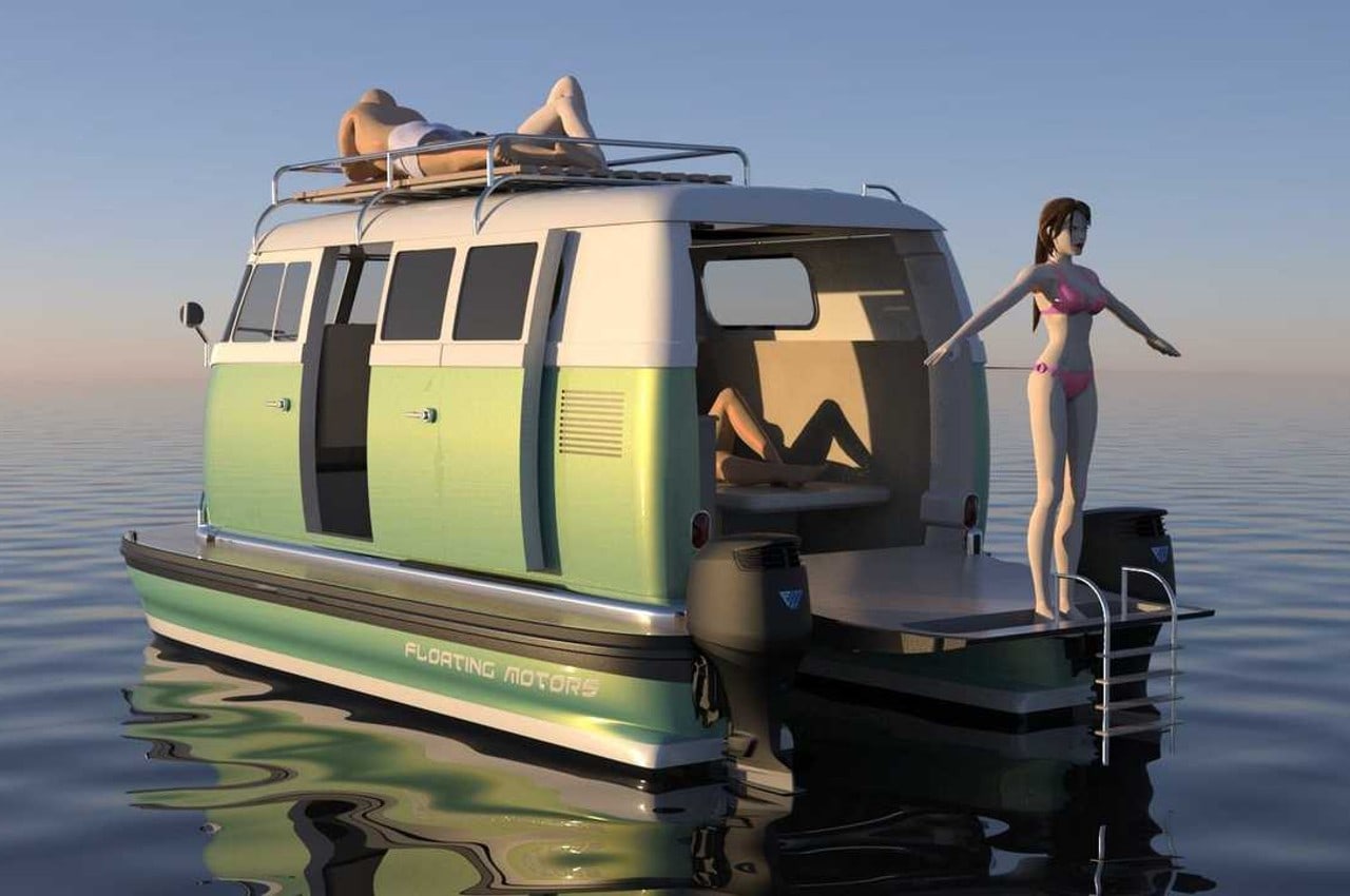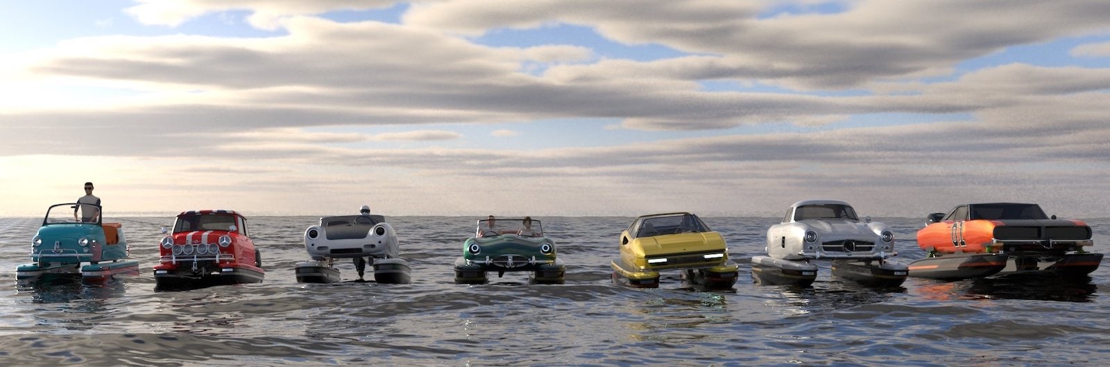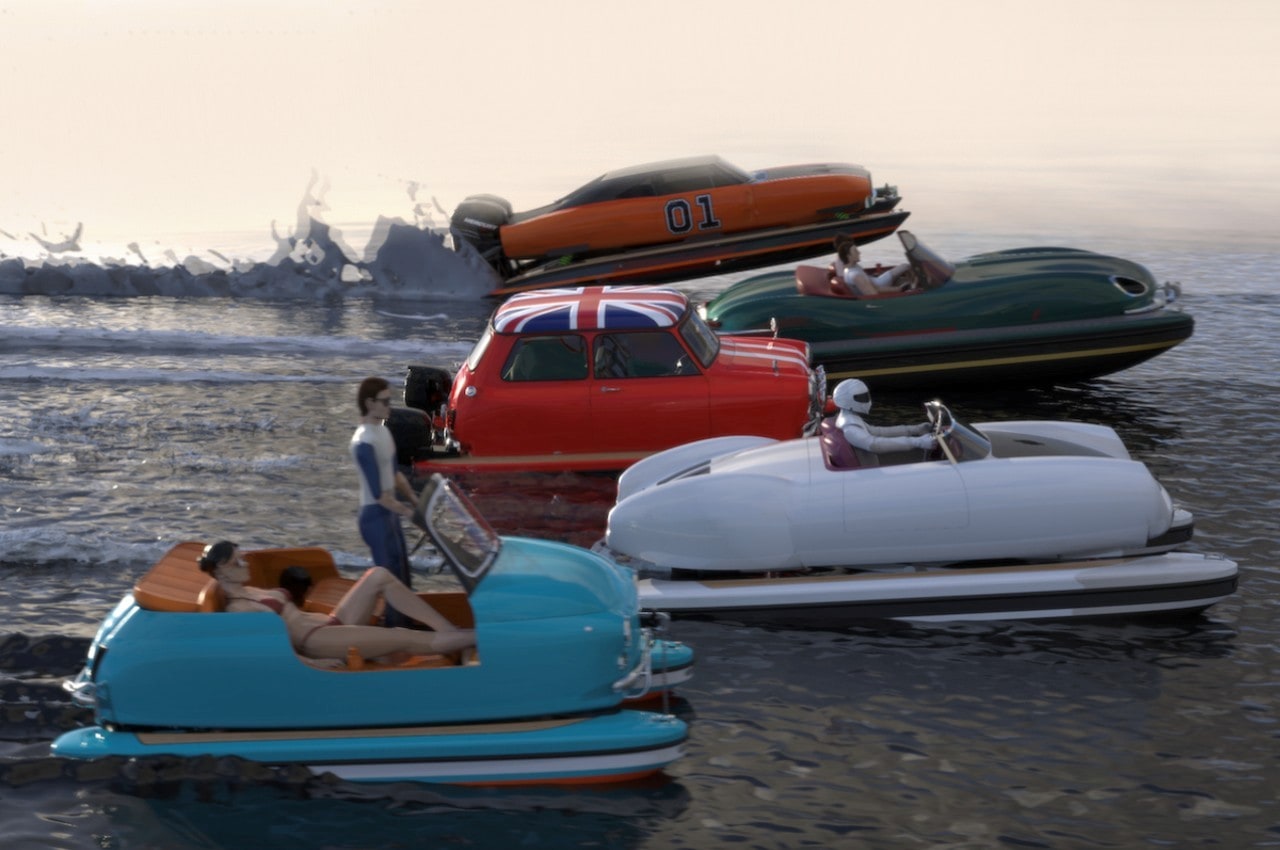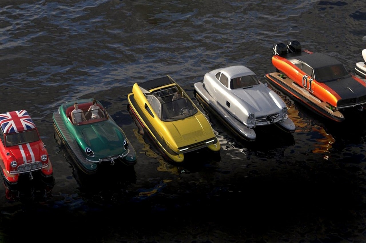 Le client payeur étant roi de son royaume de folies, il peut commander auprès de la société créée tout exprès par Pierpaolo Lazzarini, son propre véhicule ou faire le choix entre plusieurs modèles de longueurs, coques et types de carburants différents. De plus, chaque engin “flottatoire” possède ses propres caractéristiques comme l’iconique Combi Volkswagen dont la porte de coffre se transforme en ponton, ou comme la Fiat 500 Dolcevita, la Mini Cooper, la Jaguar Type-E et autres.