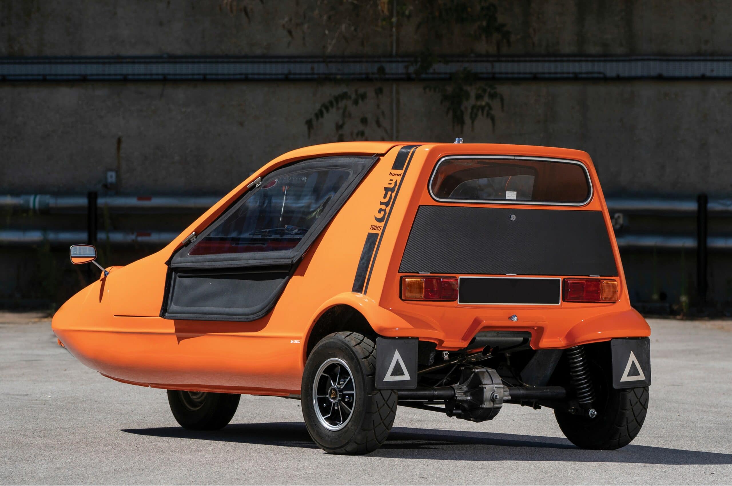 Une ligne de production supplémentaire a donc été mise en place en sept heures dans les usines Reliant de Tamworth et les travaux ont commencé… Mauvais calcul en réalité, car le succès s’est effondré aussi rapidement qu’il avait commencé. Rouler sur trois roues n’avait aucun avantage, sauf qu’à l’époque un permis moto suffisait. Avec sa construction légère, la Bond Bug faisait “Hot-Rod de ville” à l’Anglaise, elle était assez rapide avec 135 km/h réels. Mais entrer et sortir par l’immense porte à charnière supérieure n’était pas très pratique, la visibilité sur les côtés et à l’arrière était médiocre, de plus, pour le pays des Bentley, Rolls et Jaguar, en y regardant de plus près, l’aspect plastique faisait “pauvre” et à l’intérieur et aucun centime n’avait été dépensé pour l’isolation acoustique, de sorte qu’une radio ou une bonne conversation était de peu d’utilité !