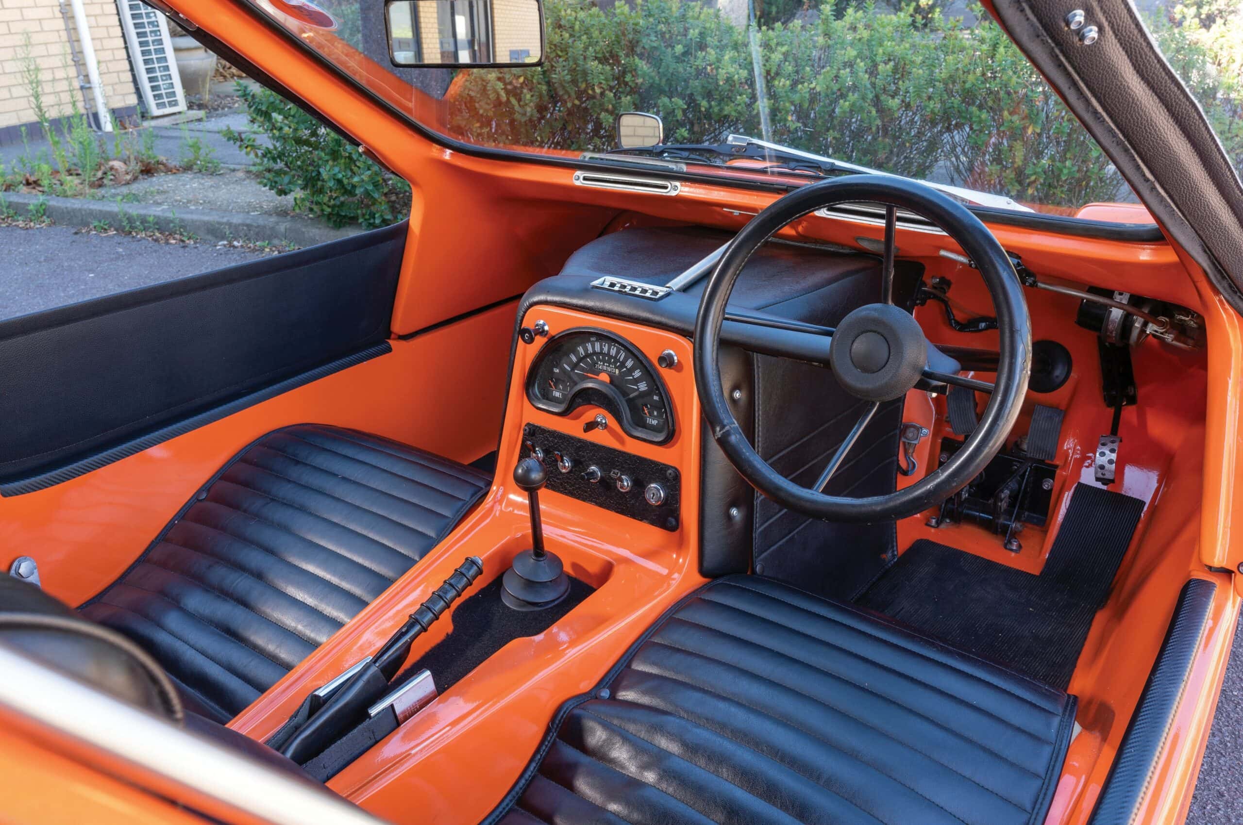 Moi, marginal, je roulais en Morgan 4/4 avant de passer à la Mustang Boss 302 puis à la Shelby GT350… Cool ! J’étais architecte et j’éditais “Home” un mag avant-gardiste de déco. Les designers industriels de cette période s’adonnaient aux choses les plus branchées et les plus folles, de préférence dans le nouveau matériau plastique et de préférence dans l’orange et le violet, les couleurs du Tibet, des parfums et de l’encens. Le monde entier semblait devenir plastique, même Plastic-Bertrand qui planait pour lui-même, en orange, vert ou violet : téléphones, réveils, cendriers, tables d’appoint et lampes de table. C’est de cette époque que j’ai conçu mon fameux bureau rouge !