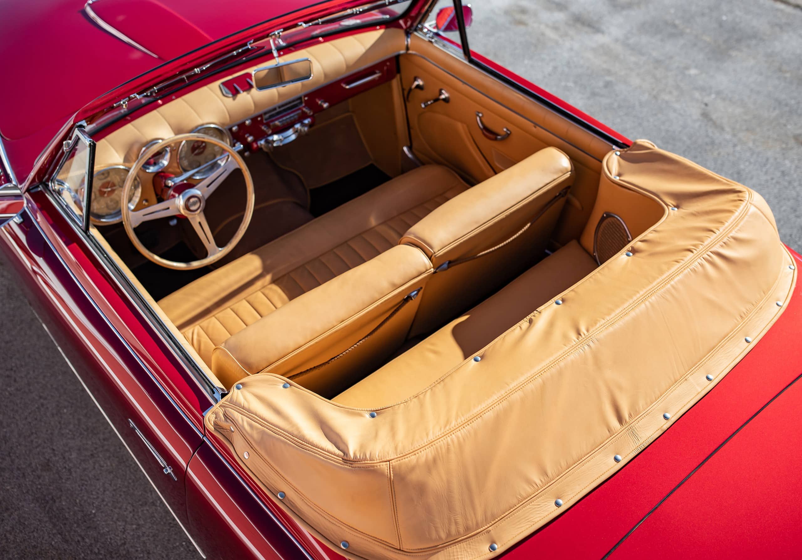 La voiture que vous voyez ici est un cabriolet Cunningham C-3 de 1953, acheté neuf par le collectionneur de livres rares Irving Robbins et présenté au Concours d’élégance de Pebble Beach en 1956, 1957 et 2015. Lorsqu’elle a été livrée pour la première fois aux États-Unis avec sa nouvelle carrosserie Vignale, cette voiture, châssis 5441, a été exposée chez Alfred Momo à New York. Quand Irving Robbins a acheté la voiture, il l’a échangée partiellement avec sa Cunningham C-2 endommagée en course. Au cours des années qui ont suivi, cette voiture a traversé trois collections privées très respectées, dont l’une a soigneusement restauré la voiture.