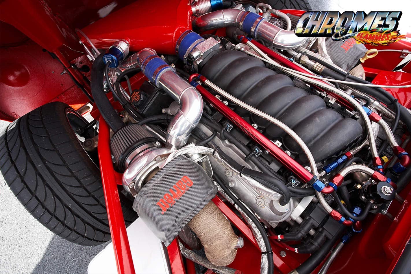 Les lignes élégantes et classiques de la E-Type-Jag sont restées nettes, modernes et sportives, même selon les normes actuelles sous les contraintes de la guerre d’Ukraine et l’envolée du prix de l’essence. Mais ce n’est pas une E-Type ordinaire ! C’est probablement l’un des designs les plus évocateurs jamais construits, sur base duquel les limitations techniques britanniques traditionnelles des années 1960 amenaient à la fabrication de véhicules “ampoulés”, raides et chics… Certes, l’évolution des mœurs a amené les gens de Jaguar à modifier la version abâtardie de la E-Type en y positionnant un V12, mais cela n’en a pas pour autant transformé la belle en monstre de route. C’est avec cette lumineuse constatation en tête, qu’un fou a imaginé y placer un V8 de Corvette LS2 pour corriger quelques oublis d’ingénierie. Enzo Ferrari avait (réellement) dit à la première sortie de la Jaguar E-Type, bi-place, qu’elle était à ses yeux la plus belle voiture jamais fabriquée. La même en 2 + 2 avec le 6cyl en ligne a immédiatement perdu cette image pieuse et iconique qui ramenait son aura à une simple adéquation consumériste à destination des hypothétiques familles qui n’en avaient que faire…