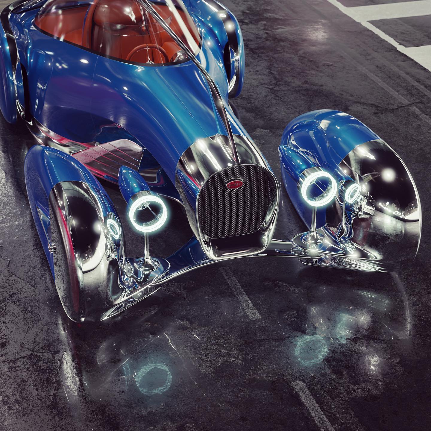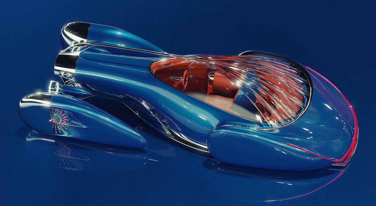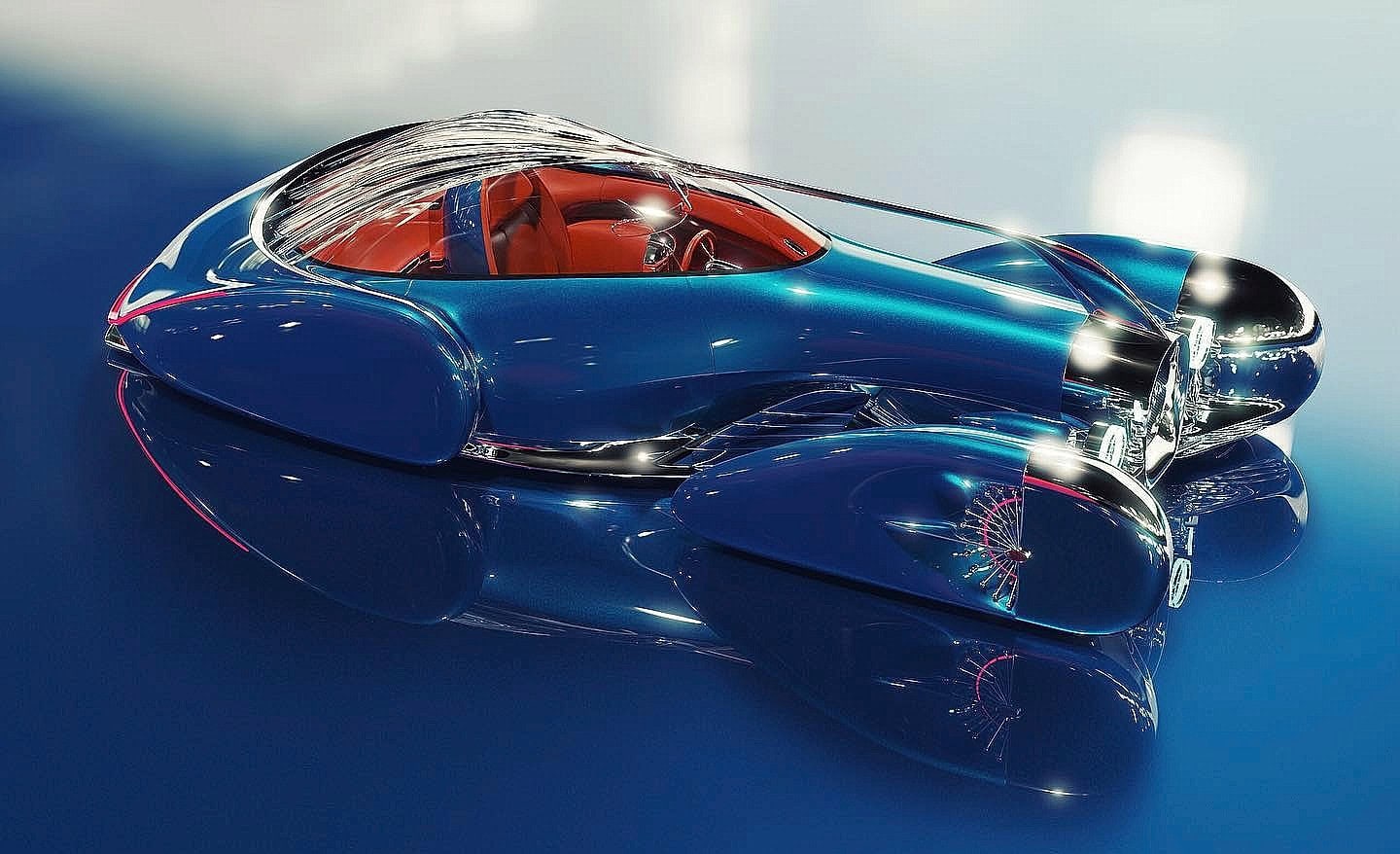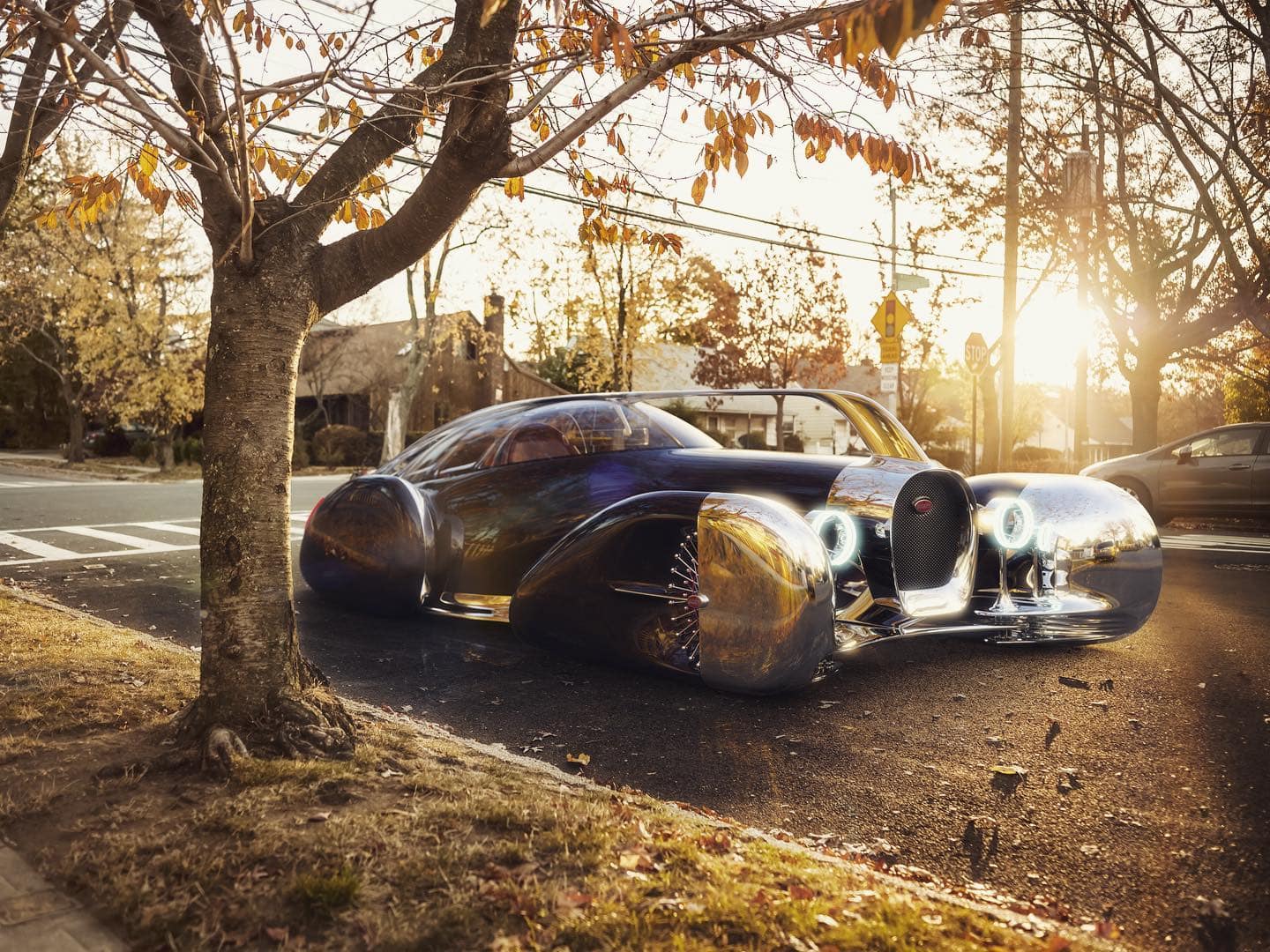 Pour rester dans la folie du très haut de gamme, l’artiste en questions sans réponses se nomme Cong-li et est Chinois. Il a opté pour un look très rétro-avant-gardiste, conservant la forme générale de la Bugatti Atalante type 57 tout en installant des fonctionnalités modernes comme des lumières LED et une motorisation motopropultrice électrique qui pour l’instant reste également un mystère… La calandre du radiateur de refroidissement/moteur suggère à tort qu’il pourrait y avoir un moteur à combustion interne quelque part, tandis que l’étroitesse de l’avant démontre que la chose est mue par l’électricité.