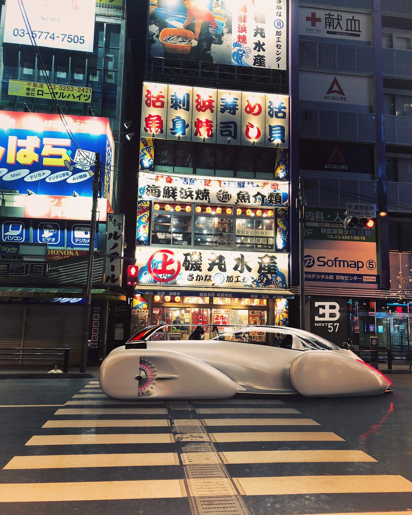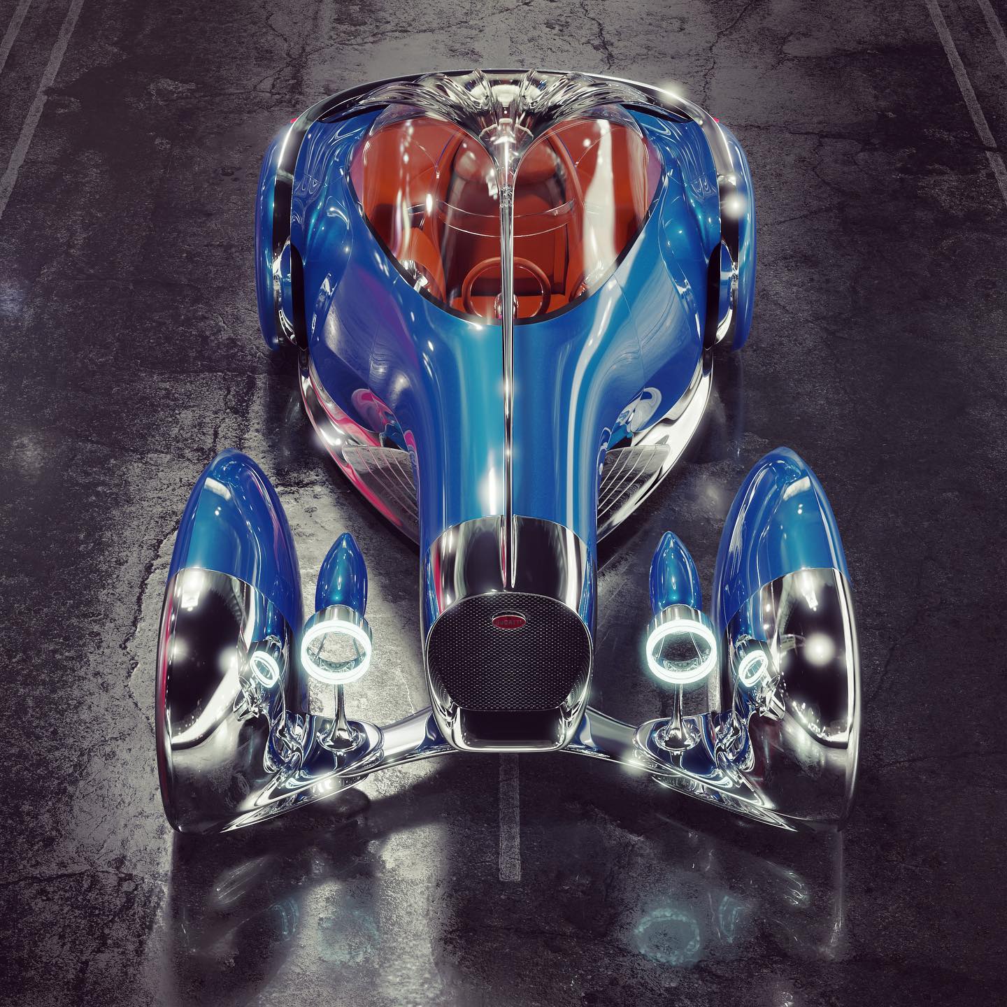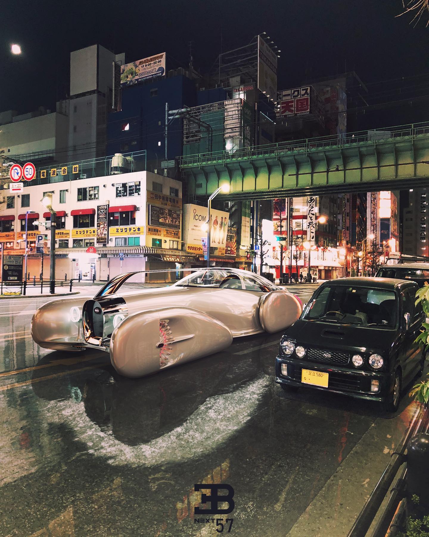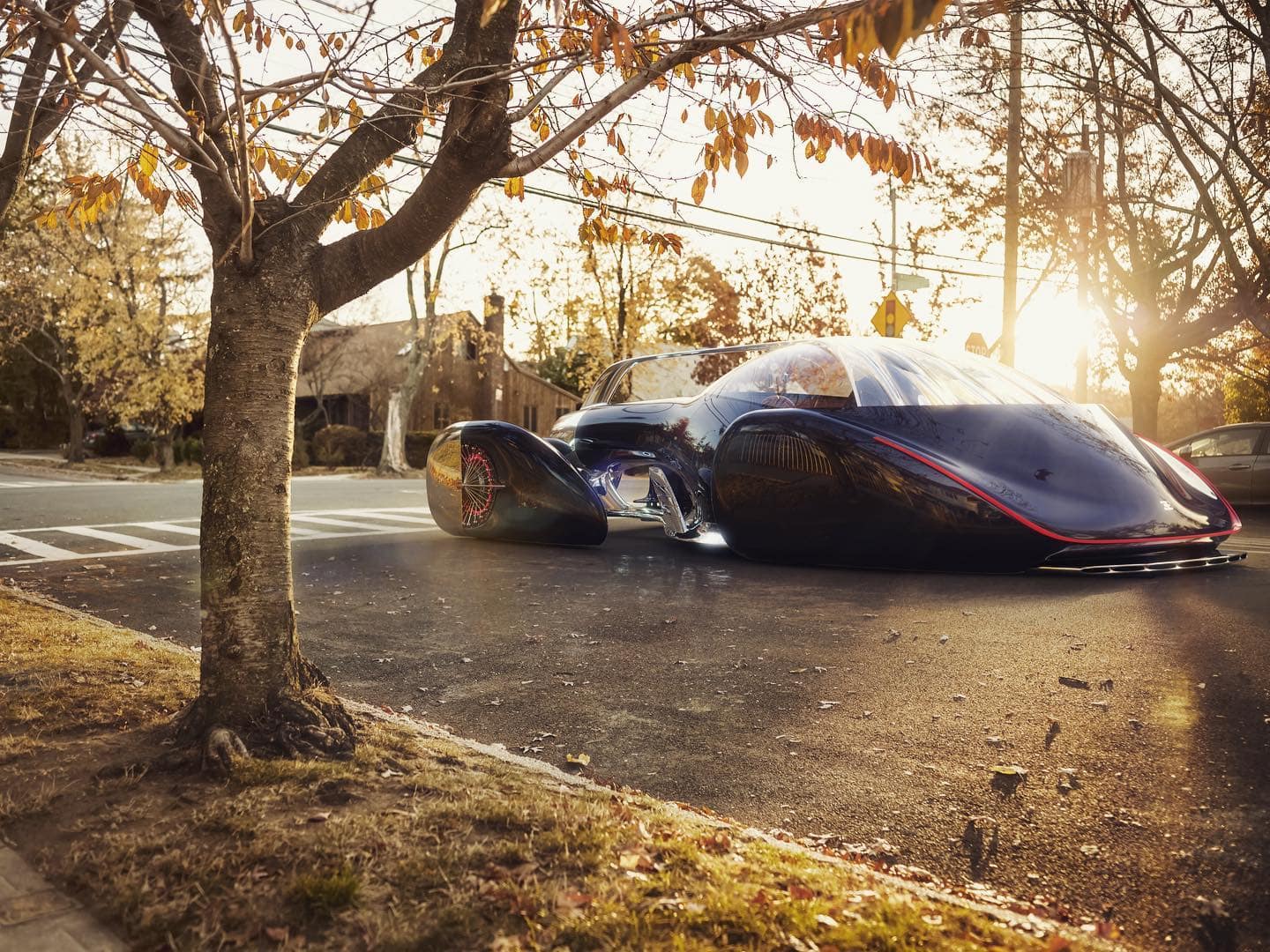 Pour rester dans la folie du très haut de gamme, l’artiste en questions sans réponses se nomme Cong-li et est Chinois. Il a opté pour un look très rétro-avant-gardiste, conservant la forme générale de la Bugatti Atalante type 57 tout en installant des fonctionnalités modernes comme des lumières LED et une motorisation motopropultrice électrique qui pour l’instant reste également un mystère… La calandre du radiateur de refroidissement/moteur suggère à tort qu’il pourrait y avoir un moteur à combustion interne quelque part, tandis que l’étroitesse de l’avant démontre que la chose est mue par l’électricité.