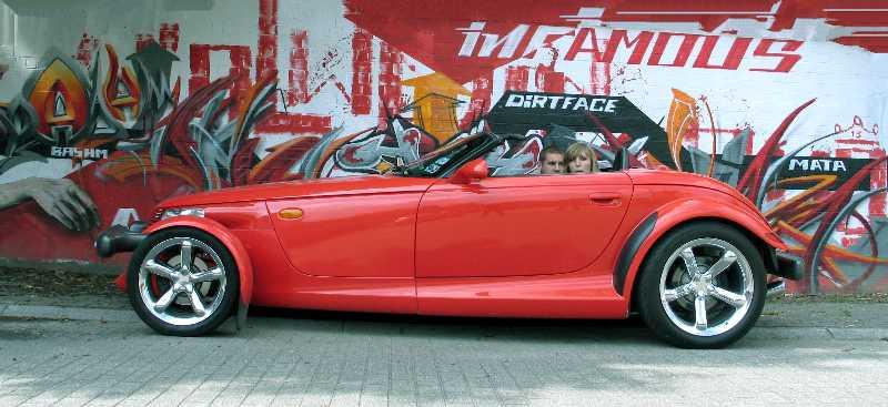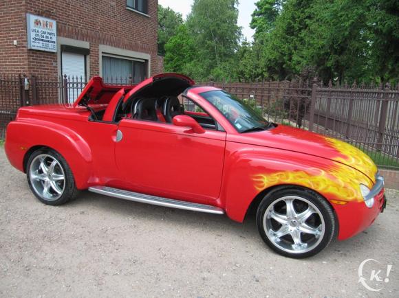 – Rony, je viens de vendre un Prowler jaune et les valeurs ne sont pas plus les mêmes qu’un ou deux ans auparavant, que ce soit pour les Prowler’s ou les SSR’s. Je sais de quoi je parle, j’ai encore deux Rod’s dans ma collection, mais aussi 3 Excalibur’s et quelques autres anciennes dont une Mustang Cabrio…, malgré des centaines d’annonces, quasiment personne ne téléphone ou simplement ne vient discuter… Et quand une personne vient, elle casse le prix ! Votre SSR me préoccupe à cause des flammes qui sont une décoration personnelle qui varie d’un amateur à l’autre, je peux m’en accommoder pour ne pas vous obliger à repeindre, de plus repeindre serait également une moindre valeur en ce qui concerne l’état d’origine. Concernant le prix, je m’intéresse à votre SSR mais ce n’est qu’une passade, un caprice, un coup de coeur…, ce n’est pas nécessairement un achat très raisonnable à notre époque de crise, j’ai l’avantage à 64 ans de ne pas avoir une femme qui fait des caprices et me menace avec un rouleau à tartes parce qu’elle préfèrerait avec cet argent, acheter une nouvelle salle de bain ! 20 000 €uros, je veux bien payer avec un sourire, ce n’est pas une offre “bullshit”, mais 27.000 €uros c’est trop pour un Pick-Up d’occasion de 10 ans vieux, il date de 2003…, qui a parcouru 72.500 km et a nécessité des nouvelles jantes et pneus… Votre SSR rouge avec des flammes est reconnaissable, ça fait longtemps que vous cherchez à le vendre, sans succès, vous avez même été la semaine dernière dans une foire consacrée aux Custom-Cars à Anvers… et là aussi, vous n’avez pas eu d’offre. Moi je vous en fait une…
