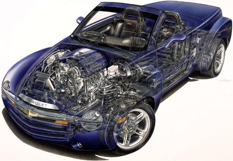 Quelques années plus tard, la direction de Chevrolet apporta une correction de tir pour raviver l’engouement envers le SSR en le dotant finalement du moteur V8 de 6,0 litres dont la puissance passait de 300 à 400 chevaux…, il s’agissait donc du même moteur que l’on retrouvait sous le capot de la Corvette, qui était par ailleurs jumelé aux mêmes boîtes de vitesses que celles de la Corvette, soit la manuelle Tremec à six vitesses ou encore l’automatique qui ne comptait toujours que quatre rapports.