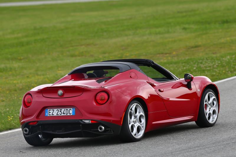 Alfa semble avoir retrouvé des couleurs, les Alfistes se réjouissent, d’autant que dans quelques semaines, la nouvelle berline, une grande familiale, devrait être dévoilée. On évoque le nom de Giulia mais rien n’est moins sûr…, moi, j’opterais plutôt pour une appellation nettement plus prestigieuse, inédite… mais avant cet évènement d’importance, Alfa a décidé d’enlever le haut de son coupé 4C et de le transformer en spider encore plus désirable mais aussi nettement plus cher : 73.000 € prix de base, soit 10.000 € de plus que le coupé, ce qui n’est vraiment pas donné…