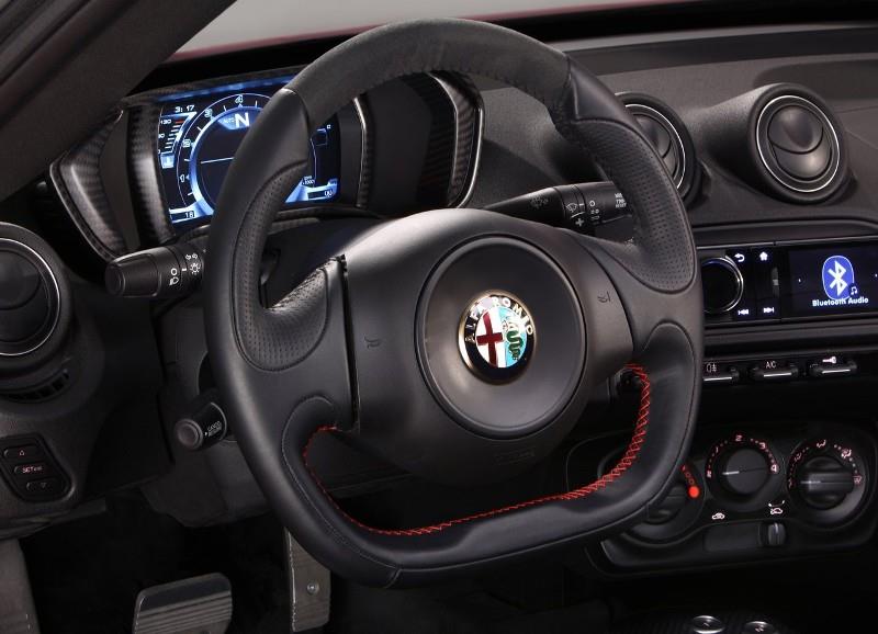 A ces allures, le petit réservoir de 40 litres se vide comme par enchantement, comptez avec le couteau entre les dents entre 13 et 16 l/100 km… quant au confort, soyez plutôt indulgent, les suspensions font pas de cadeau, les moindres irrégularités sont ressenties de manière très ferme, les bruits de roulement sont omni présents, les sièges baquets manquent de soutien latéral. Les grandes courbes, la 4C les adore, les enroule à une vitesse démentielle, la voiture virant bien à plat, remarquablement campée sur ses quatre roues… avec en prime une incroyable motricité, l’autobloquant arrière à commande électronique faisant bien son boulot…., bémol au concerto…, si le freinage confié à quatre gros disques ventilés se veut puissant, progressif et difficile à mettre à genoux, en revanche, la direction ultra directe et précise relève du parcours du combattant… du moins à basse vitesse… et pour cause, il n’y a pas d’assistance (sic !), les manœuvres pour se parquer deviennent donc assez pénibles… mais une fois en mouvement, cela se passe beaucoup mieux… du moins si l’on sait que le train avant suit la moindre saignée de la chaussée (gag !) et que dès lors, mieux vaut tenir fermement cette direction afin de corriger constamment la trajectoire…, ce qui à la longue devient assez fatigant et éprouvant, on prend tout dans les bras…, la solution serait une direction électrique, dont l’assistance diminue au fur et à mesure de la vitesse, cela existe déjà…, ailleurs !