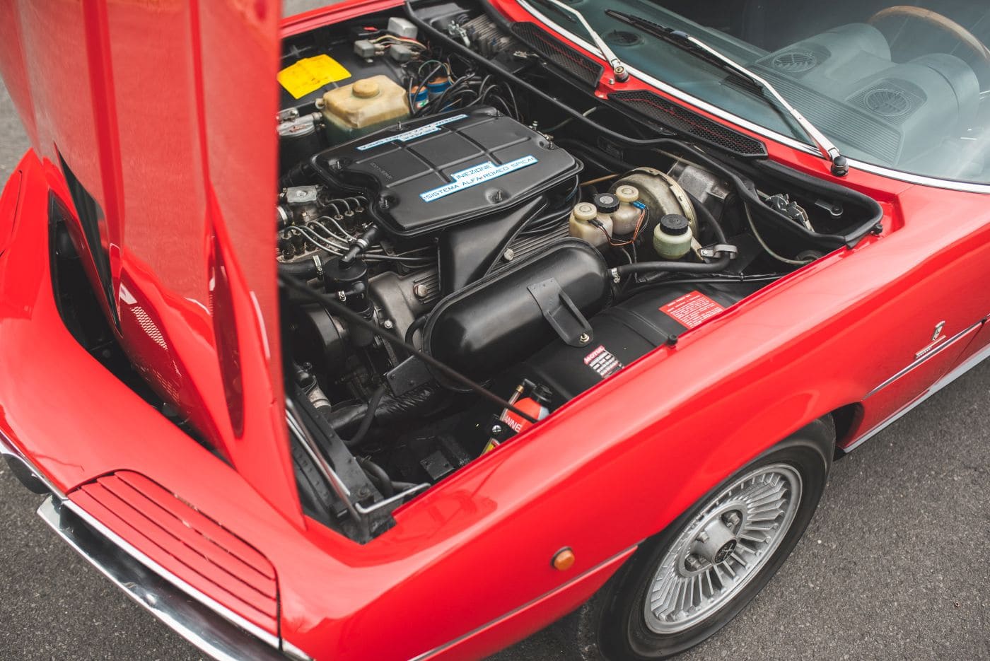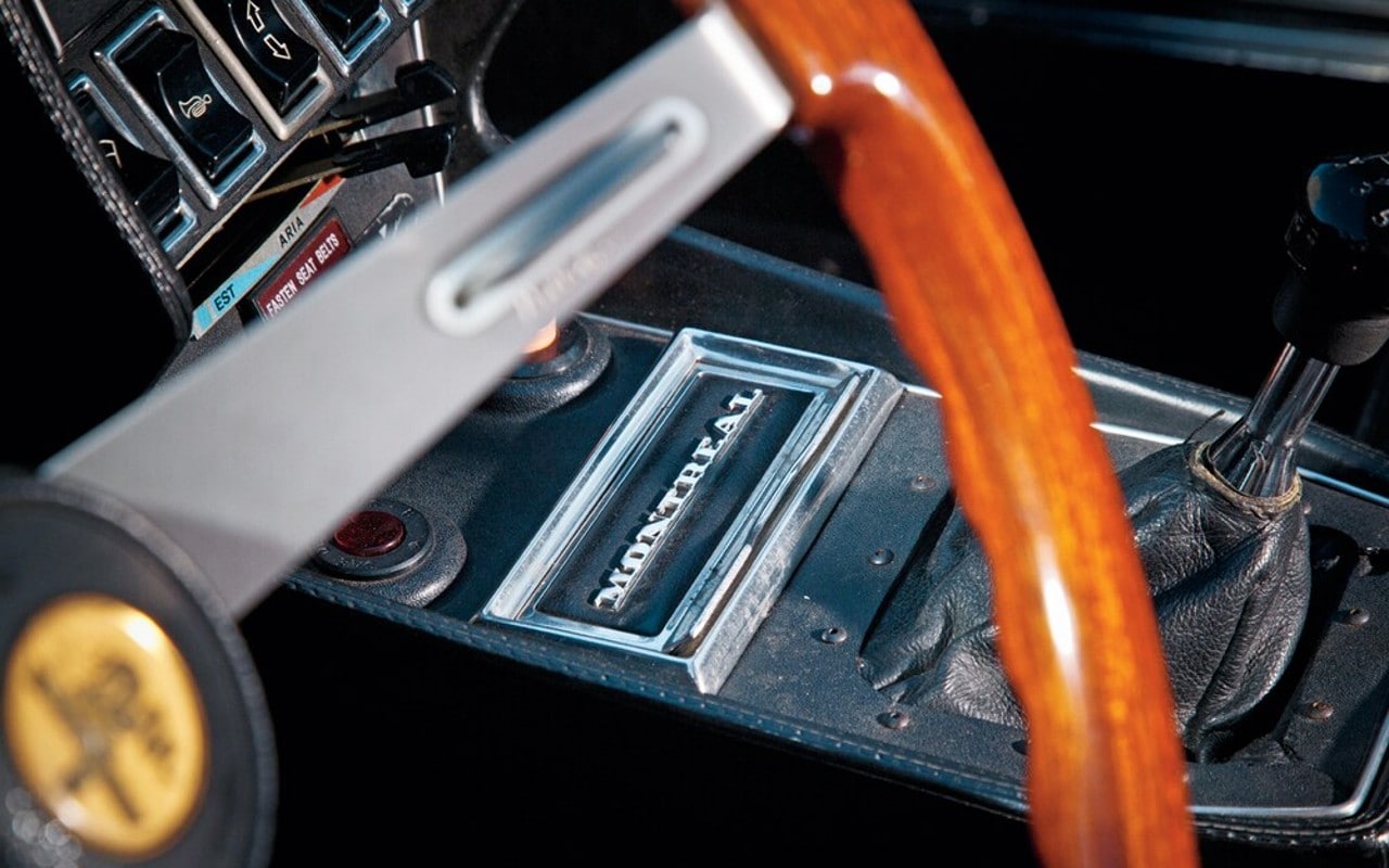 Il convient également de noter les cils mobiles façon pute au-dessus des phares de la Montréal, qui sont similaires dans le style aux cils noirs de la Miura. Petit fait amusant : Le seul endroit sur toute la voiture où le mot Montréal apparaît est sur le couvercle du cendrier. À quel point est-ce incroyablement cool ? Personne n’a jamais reçu de réponse ! Notez cependant que le mot “Montréal” se trouve sur le carnet de bord explicatif de la voiture ainsi que le carnet d’entretien et le manuel technique !
