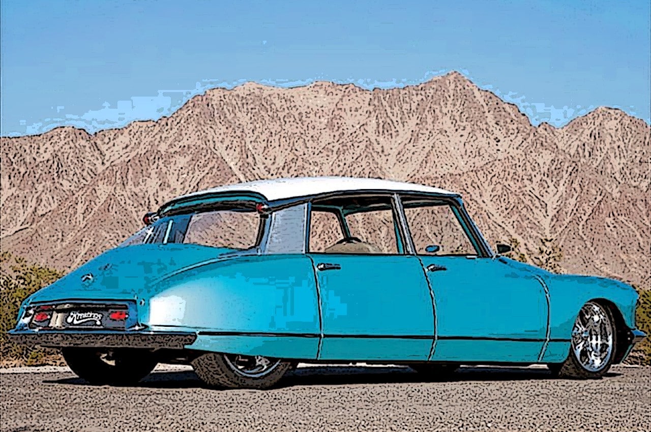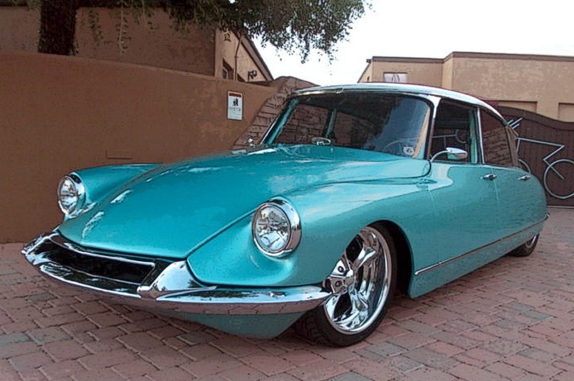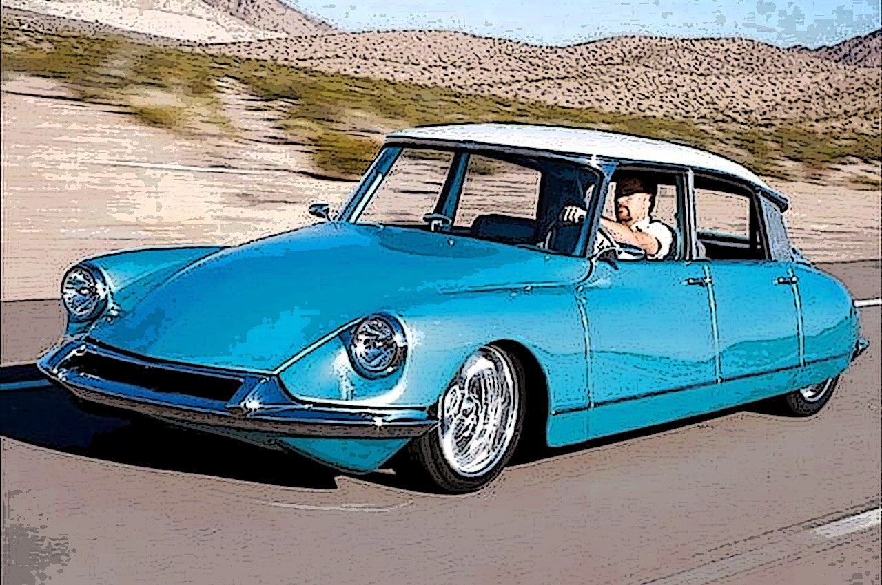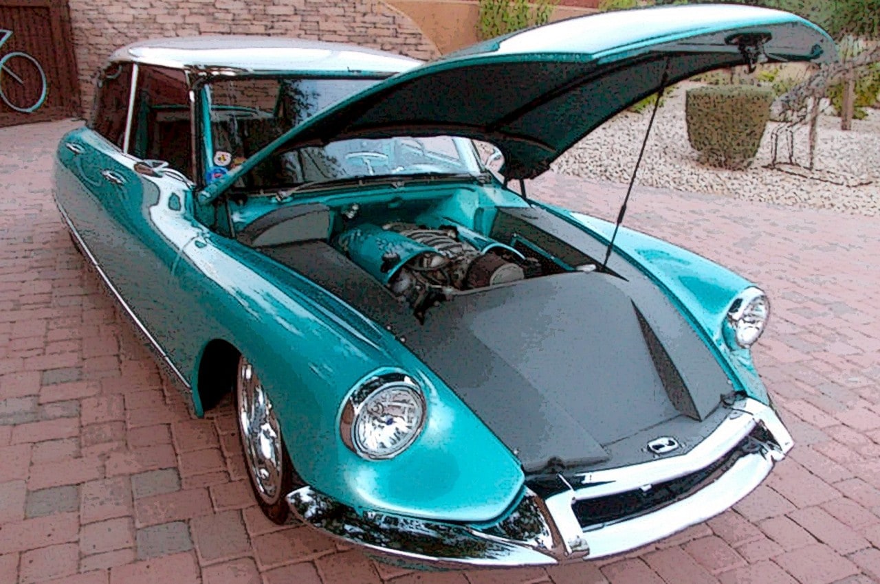 La Citroën était unique parce qu’elle avait toujours toutes ses pompes hydrauliques et vérins partout… en parfait état…, mais aussi son moteur quatre cylindres au top du top…, elle avait d’ailleurs traversé les USA de New-York à Los Angeles, sans le moindre problème…, en parfait américain irrespectueux (la preuve est faite depuis très longtemps que les les USA ont la volonté de modifier l’ensemble du monde à leurs seules valeurs : Coca-Cola, McDonald et Chevrolet en tête), Jeff Meyer à tout démonté, moteur, suspensions, carrosserie… et a adapté un châssis G-Max de Hot-Rod de chez Art Morrison pour épouser parfaitement la carrosserie de l’ID19 (à l’opposé de la plupart des voitures américaines, la carrosserie des ID et DS a une largeur plus étroite dans leur dos qu’à l’avant).