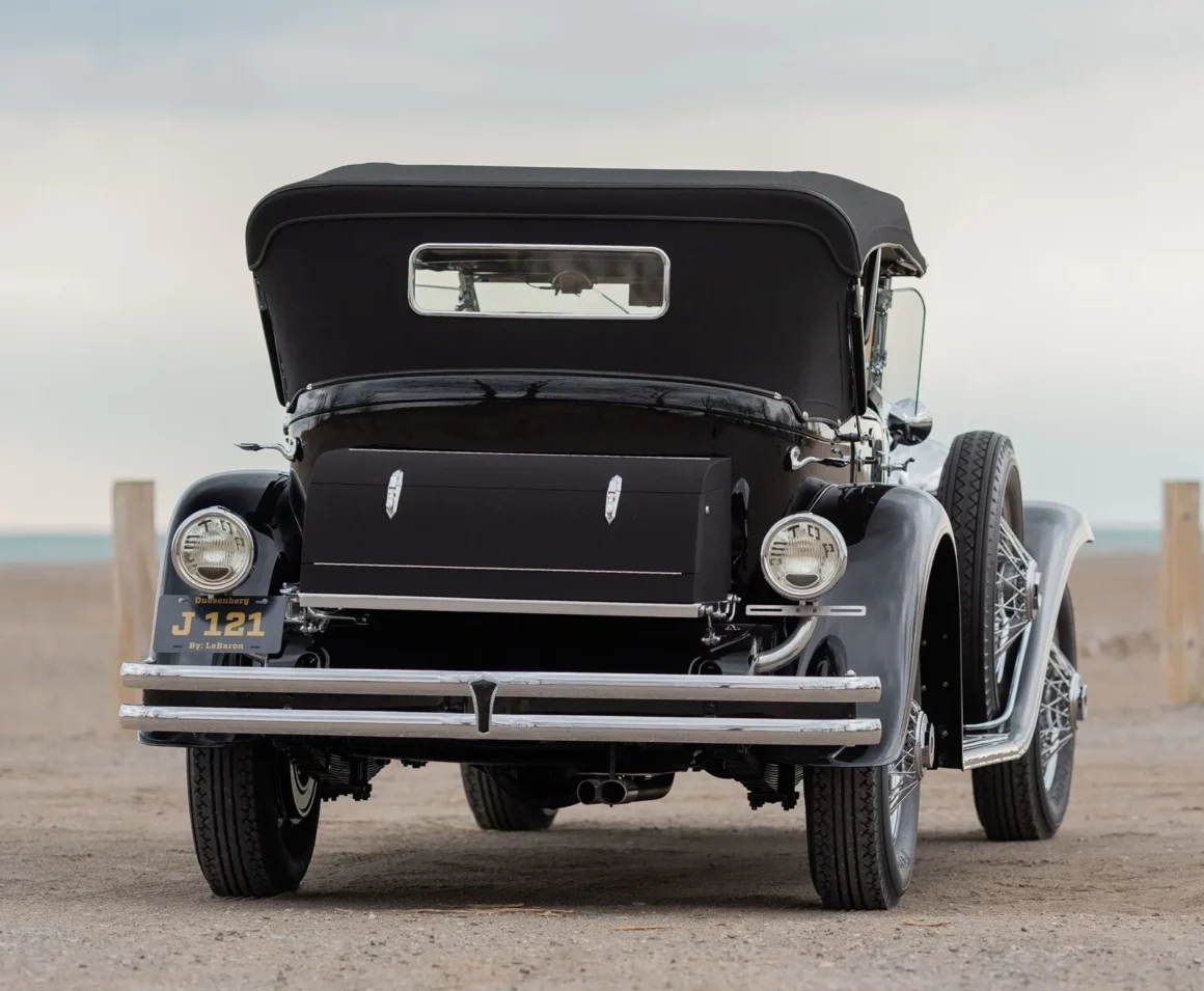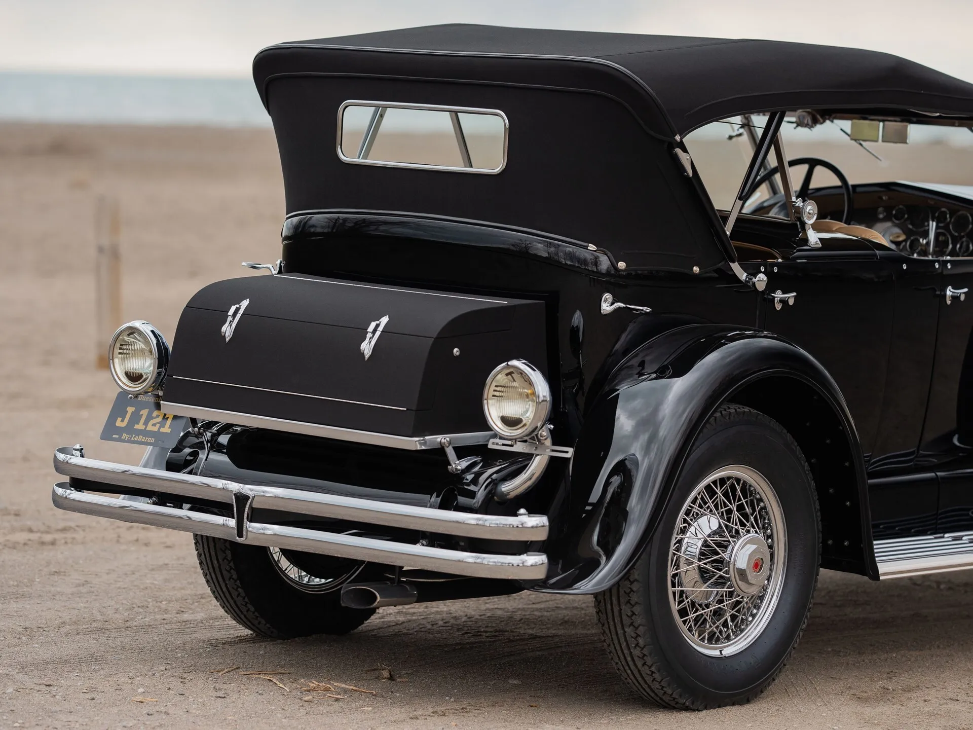 Cette Duesenberg particulière, numéro de châssis 2177 (portant le numéro de moteur J-121), a été livrée à Philip Wrigley le 9 juillet 1929 avec une carrosserie coupé décapotable de Murphy. Cependant, la voiture ne conserverait cette carrosserie que pendant un peu plus d’un an et quelque 10.400 milles. Un échange de carrosserie a été effectué entre J-121 et J-147, qui portait une carrosserie Phaeton à double pare-brise LeBaron ‘Sweep Panel’ .