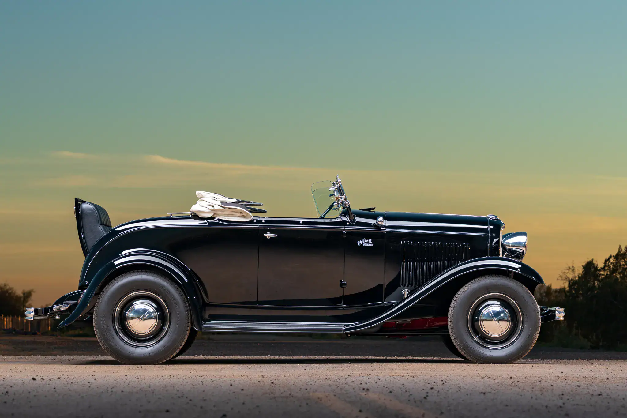 Un klaxon “Ahooga” (véridique !) est monté sous le plancher. Le baratin qui est mis en cause, va effectivement trop loin dans la tromperie organisée car il stipule que la voiture a été conservée par la famille Edelbrock pendant deux décennies et utilisée lors de salons et pour des expositions… Sur ce point, l’avenir judiciaire mène direct en tôle… La réplique est déclarée comme étant une Ford de 1932 avec le numéro VIN 1833482 et devrait se négocier aux alentours de 165.000$… soit la moitié du montant escompté qui ne trouve finalement pas de preneurs go-go…