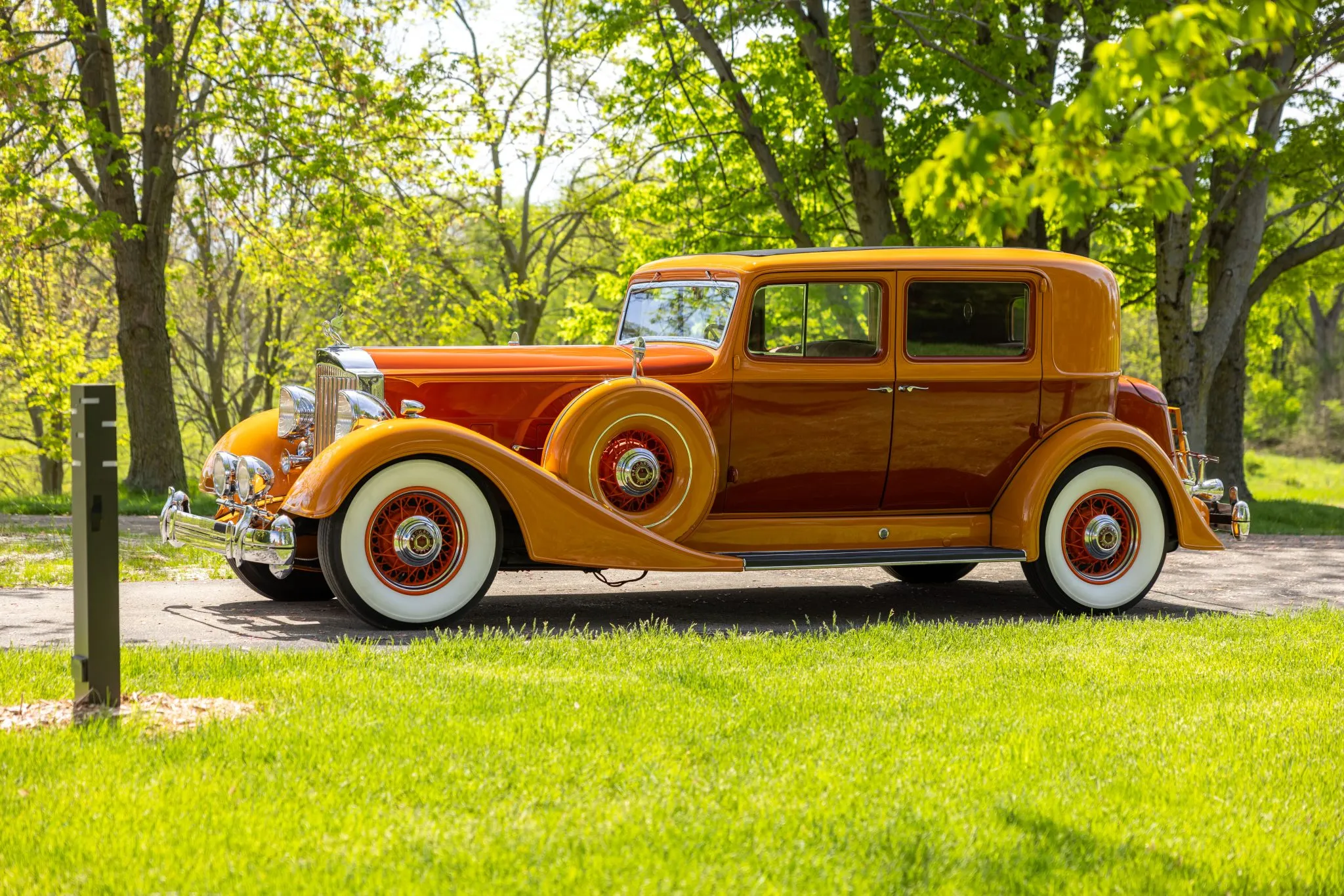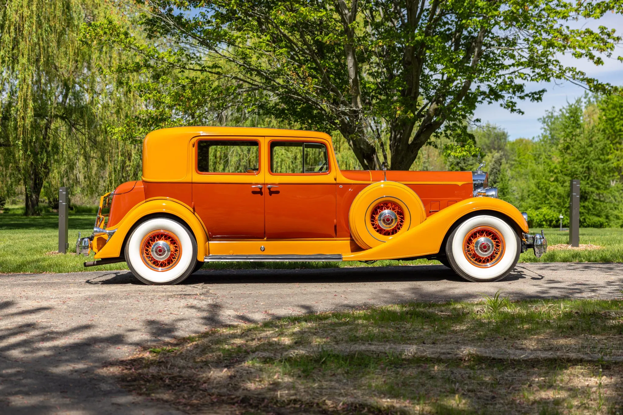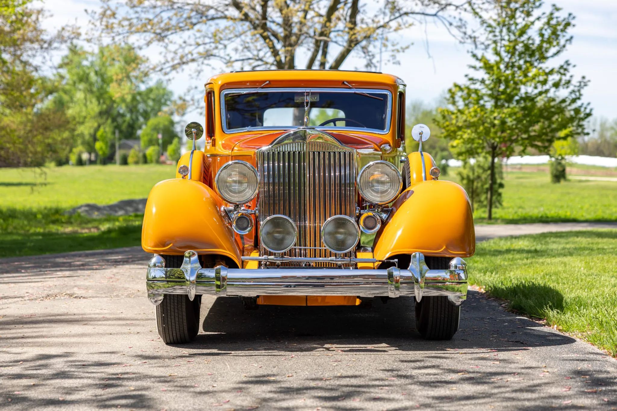 La société n’a vendu que 6.071 voitures en 1934, contre 48.318 automobiles cinq ans auparavant. Heureusement, malgré ces chiffres de vente, suffisamment de voitures ont survécu ou ont été ramenées du bord du gouffre. Les concepteurs de Packard n’ont apporté que des modifications subtiles à la carrosserie pour 1934, étendant les ailes avant plus loin et plus bas devant les roues avant et faisant également correspondre de manière plus cohérente la forme des ailes arrière avec les roues arrière.