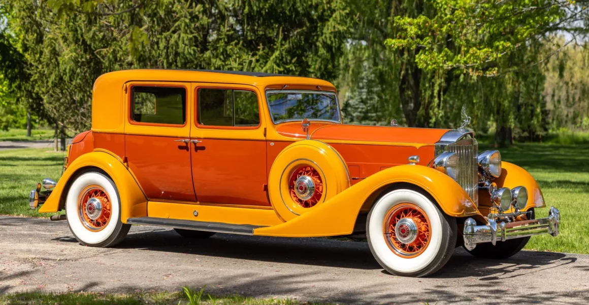 Plus profondément incurvées elles donnaient une apparence plus glamour. Les améliorations mécaniques étaient relativement mineures mais suffisamment importantes pour rester leader dans cette classe d’élite et prestigieuse. Au sommet de la chaîne se trouvaient les 12cyl, hérissés du genre de grâce, de puissance et d’élégance qui continue de définir l’ère classique. La Packard 1107 Twelve en vedette très colorée de cet article est équipée d’une carrosserie Club Sedan aux proportions agréables grâce à un un mélange bien équilibré de style et de luxe.