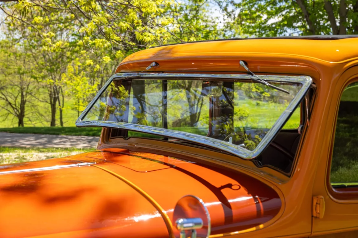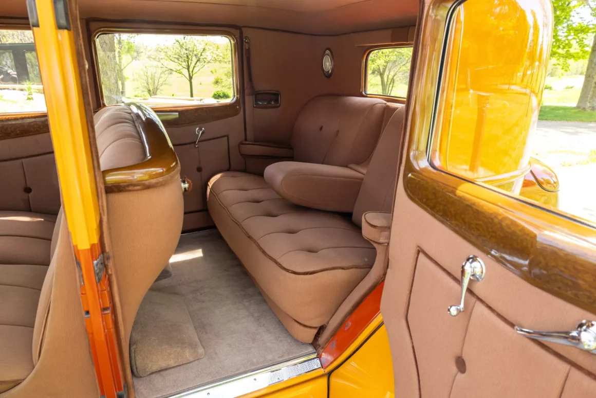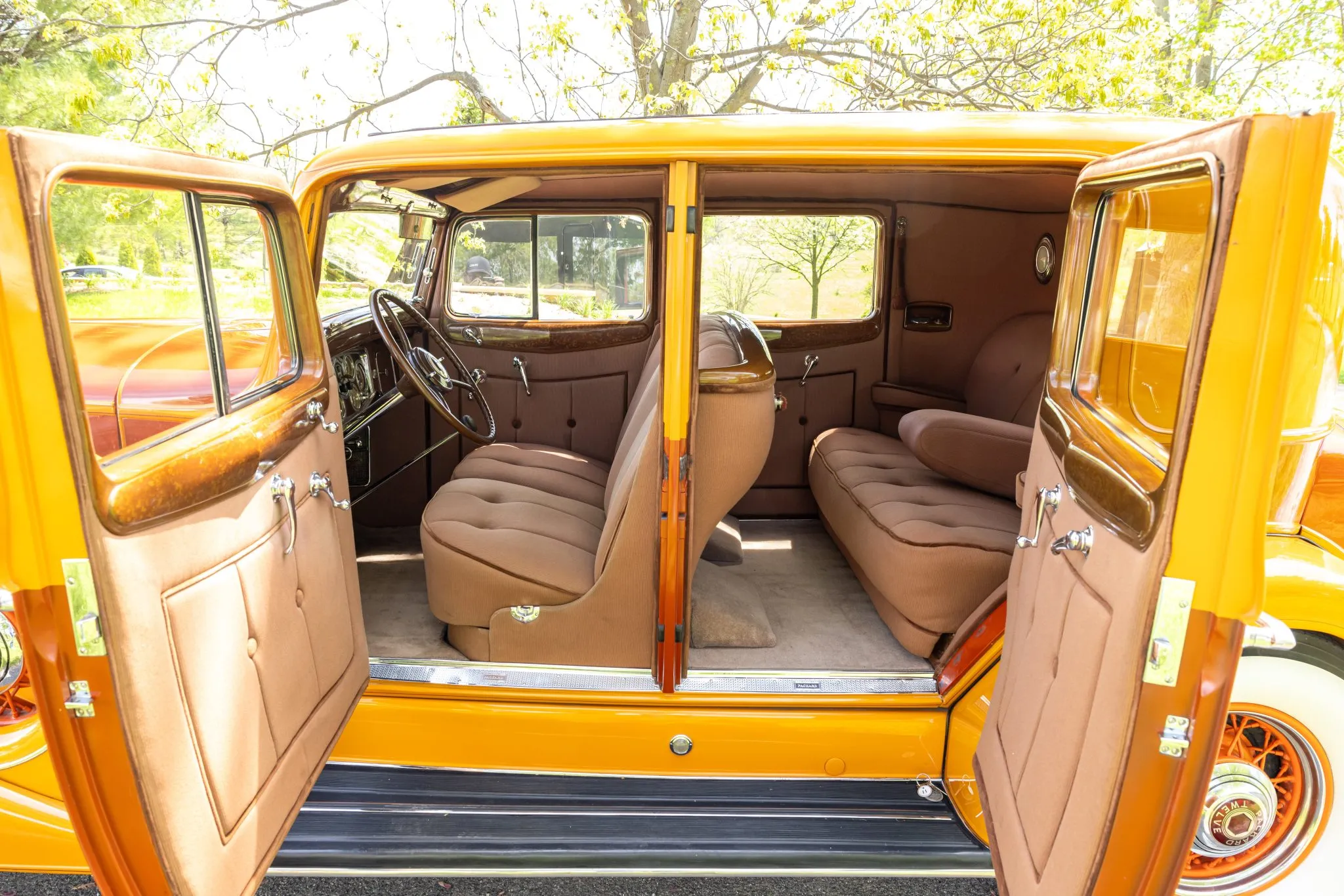 La carrosserie Club Sedan est un excellent exemple du talent de conception interne de Packard. Cette voiture a fait l’objet d’une restauration de haute qualité il y a de nombreuses années et elle a été bien entretenue au fil des ans, plus récemment dans le cadre d’une collection d’automobiles importantes de l’ère classique. Finie en rouge et orange sur une sellerie de couleur beige, elle dispose, telle qu’elle, d’un caractère “Politiquement-incorrect” qui en fait le choix parfait pour les randonnées et le plaisir de conduire détendu.