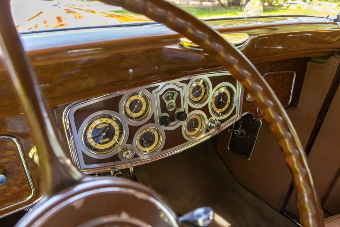 Destinée à un propriétaire-conducteur, cette berline club est assez conviviale, offrant une expérience tout aussi agréable pour le conducteur ou les passagers. À l’état neuf, le V12 de 445ci était évalué à 160 chevaux, chacun de ces poneys étant livré avec un raffinement superlatif. Cet exemple ne fait pas exception et fonctionne plus que correctement, avec la douceur et le fonctionnement quasi silencieux attendus d’une Packard Twelve dont la puissance passe par une boîte de vitesses manuelle à 3 rapports délicieusement facile à utiliser, grâce à des vitesses synchronisées.