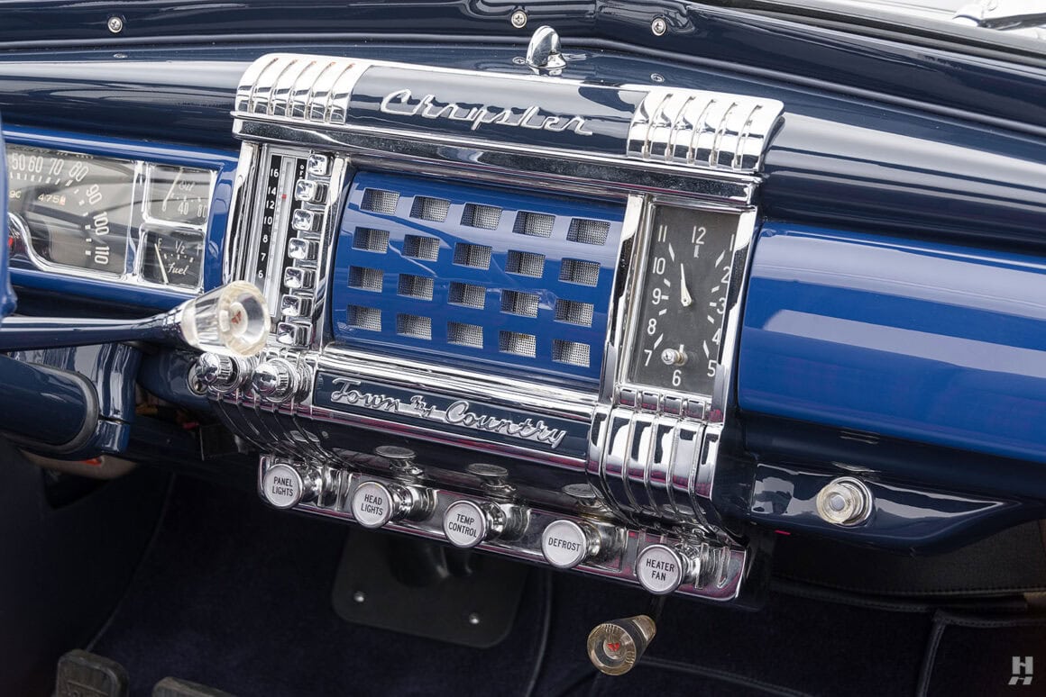 En général, seuls les cabriolets recevaient le moteur huit cylindres, tandis que les berlines étaient équipées d’une unité six cylindres plus petite. La puissance supplémentaire du huit (135cv contre 114cv) compense le poids élevé de la voiture, offrant des performances respectables et une croisière sans effort. Bien sûr, rouler Town & Country n’est pas une question de vitesse ; il s’agit plutôt d’un luxe somptueux et d’un style irréprochable.