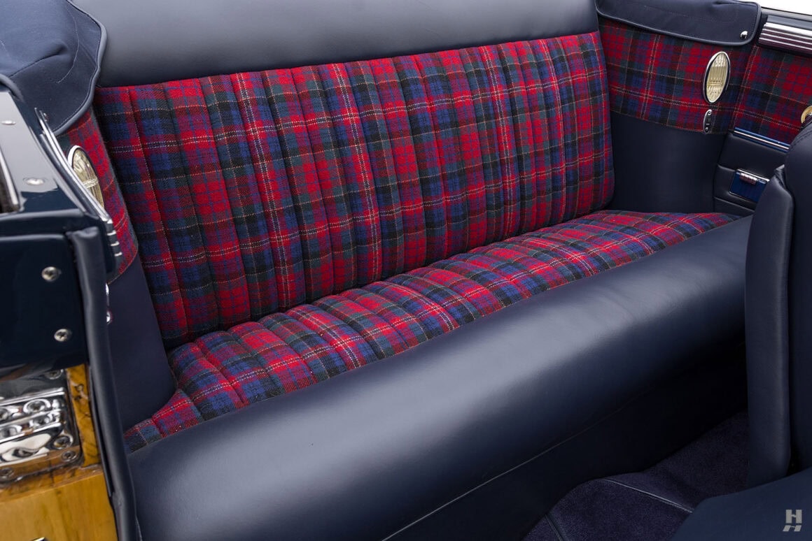 Les panneaux de carrosserie en acier sont finis dans la teinte originale, ce qui, combiné au dessus en toile beige, crée un aspect saisissant. La peinture est bien présentée partout. L’équipement de la carrosserie en bois et en acier est exceptionnel, et les garnitures en chrome et en acier inoxydable ont été restaurées, et la calandre chromée complexe est un monument…