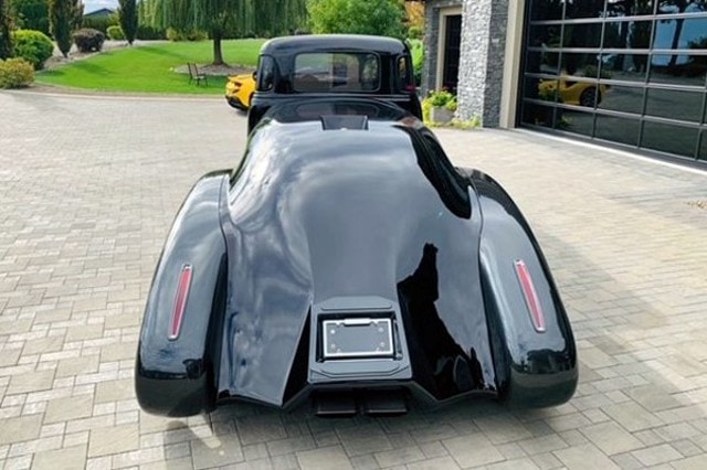 Le bloc finalement choisi est un V8 GM 502ci Ram Jet soutenu par une transmission automatique Gearstar Performance 4L80E overdrive. Il dispose curieusement de 12 injecteurs, huit en position standard par cylindre et quatre autres alimentant en plus chacun deux carbus pour éviter les coups de mous ! Un compresseur Whipple coiffe le bloc. C’est la société HP-Tuners qui est intervenue pour que tout fonctionne à l’aide d’un ordinateur embarqué. Un refroidisseur intermédiaire anormalement grand pour rendre le tout aussi haut que possible afin de remplir au max l’espace du compartiment moteur a été ajouté. Le combo fait 1.000 chevaux et pourrait flirter avec les 300km/h pour l’inconscient qui oserait “pousser à donf”...!