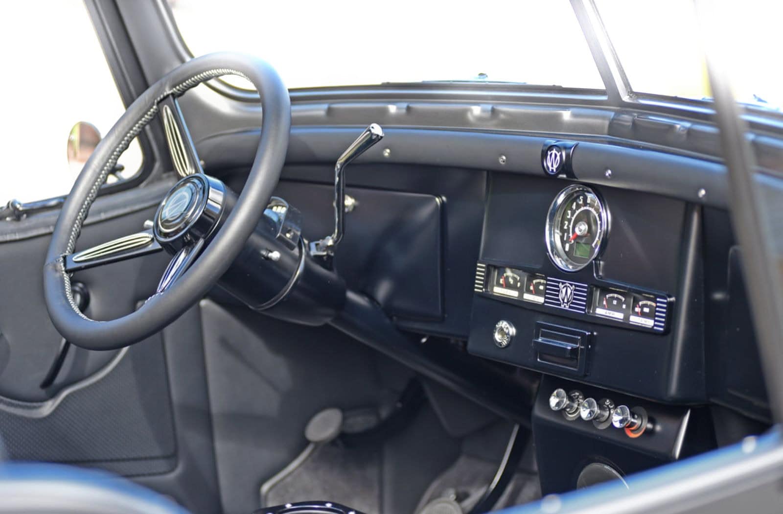 Associé à une boîte automatique à quatre vitesses Chevy Performance 4L85E, il pouvait produire une puissance de 502 ch et un couple de 565 lb-pi (766 Nm). L’équipage de DSR a repeint le collecteur d’admission et les couvercles de culasse en utilisant la même peinture Seal Grey, ce qui a permis d’obtenir un compartiment moteur extrêmement propre et élégant. Propre et élégant était le thème général de cet incroyable restomod, mais cela ne veut pas dire qu’il n’était pas capable de se salir. Avec tous les goodies tout-terrain qu’il a reçus, ce Jeepster renaissant était maintenant une bête conquérante tout-terrain.