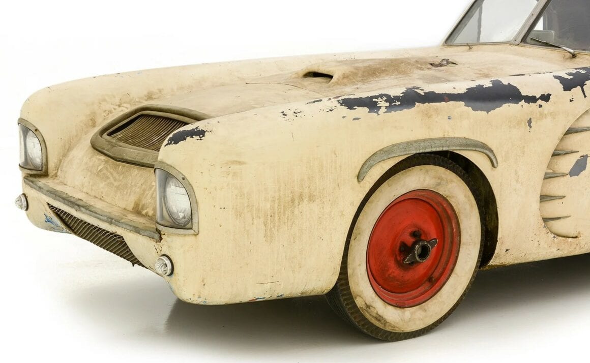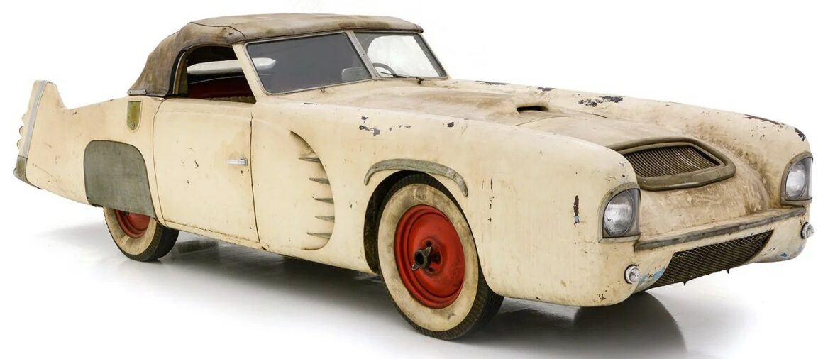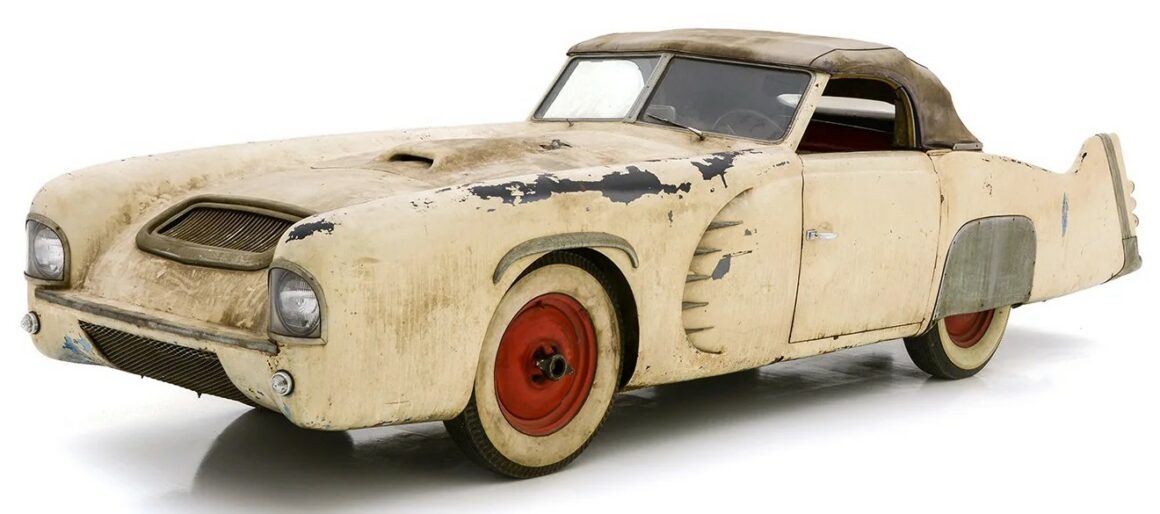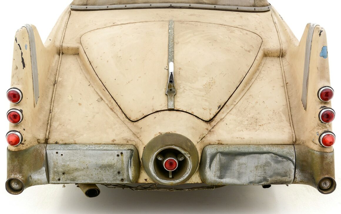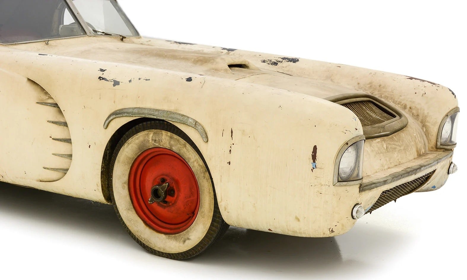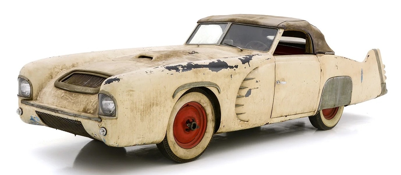 Les gens de Spohn ont créé une machine extravagante combinant des éléments du design original avec des ailerons exagérés et des éléments de style de l’ère du jet inspirés de la voiture d’exposition GM Le Sabre. Les articles de presse d’époque suggèrent que le turquoise était la couleur d’origine, et diverses photos montrent la voiture avec des enjoliveurs sombrero de style Cadillac, des pneus à flancs blancs larges, et “des guêtres” de roues arrière chromés.
