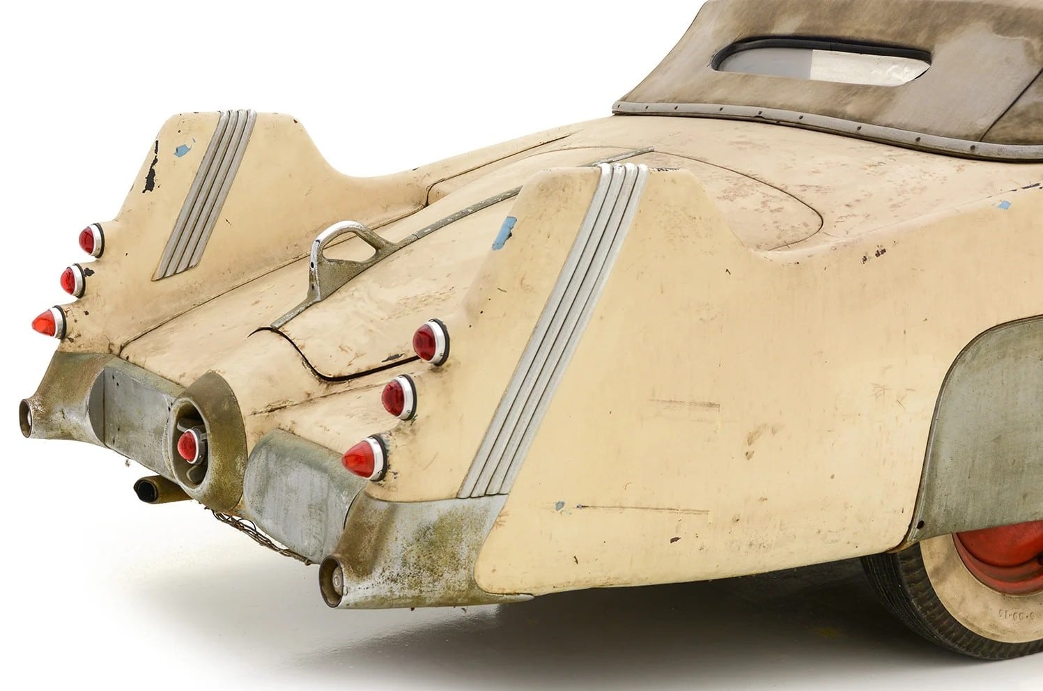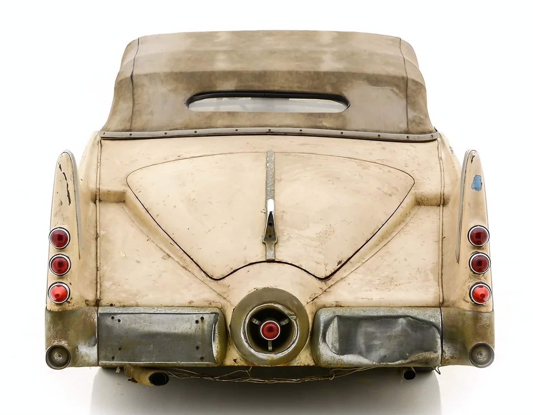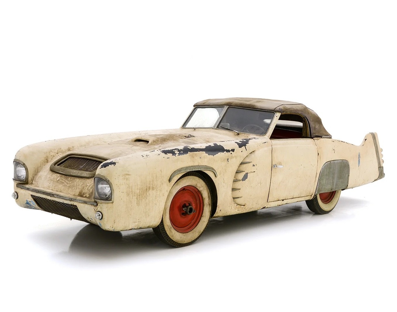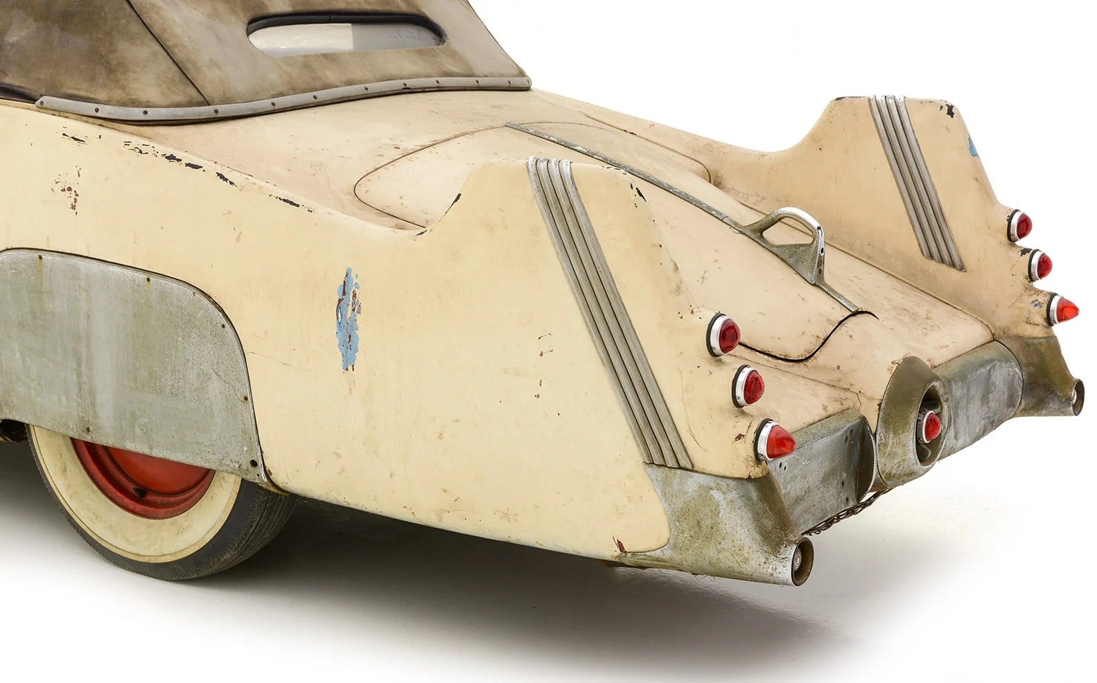 Les gens de Spohn ont créé une machine extravagante combinant des éléments du design original avec des ailerons exagérés et des éléments de style de l’ère du jet inspirés de la voiture d’exposition GM Le Sabre. Les articles de presse d’époque suggèrent que le turquoise était la couleur d’origine, et diverses photos montrent la voiture avec des enjoliveurs sombrero de style Cadillac, des pneus à flancs blancs larges, et “des guêtres” de roues arrière chromés.