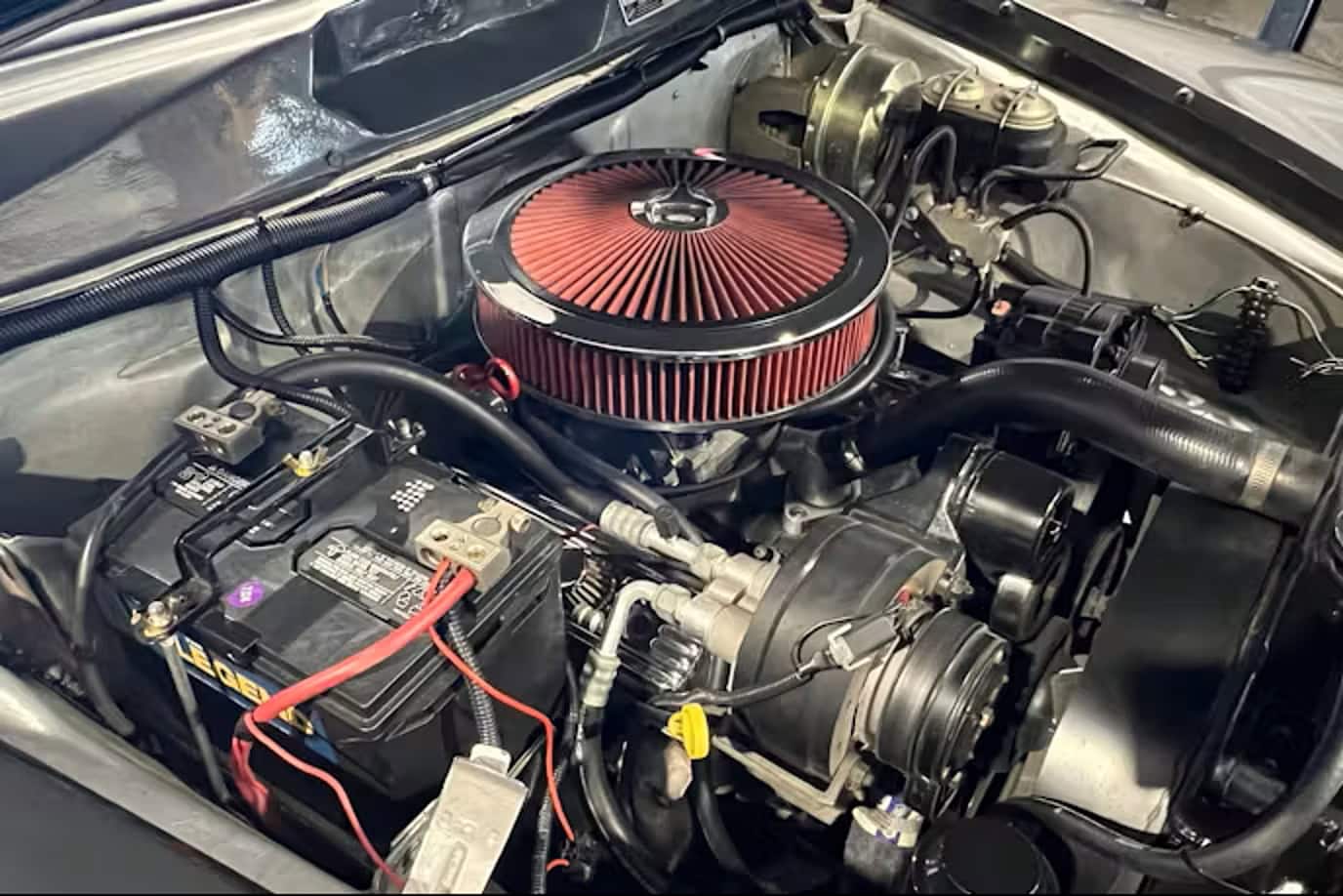 Grâce à sa légèreté, la Studebaker n’a pas besoin d’une puissance démesurée pour se faufiler dans la circulation moderne. Le 4L3 est désormais équipé d’un carburateur Edelbrock et d’un collecteur d’admission, ainsi que d’un arbre à cames adaptable d’origine inconnue. Son échappement sur mesure lui confère assurément la sonorité qu’on attend d’une telle voiture. Un élément qu’on ne voit pas tous les jours dans un Hot Rod la climatisation… Le V6 est associé à une boîte automatique GM 700-R4 à surmultiplication, qui alimente un pont arrière de Camaro à 10 boulons avec un rapport de 2,73:1.