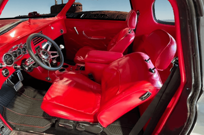 Cette Studebaker Champion de 1951 regorge de surprises, pourtant presque toutes entièrement dissimulées. Son style d’après-guerre s’inspire des avions de chasse, mais sous son capot se cache presque entièrement une Camaro de troisième génération (1991). On s’attendrait à trouver un petit bloc Chevy, mais surprise ! C’est un V6 de 4,3 litres modifié y est installé. Oui, cette Studebaker Champion 1951 est une véritable supercherie. De plus, conçue à l’origine sans sièges arrière, elle offre désormais un mini salon boudoir arrière sous son toit surélevé pour accueillir davantage de passagères.
