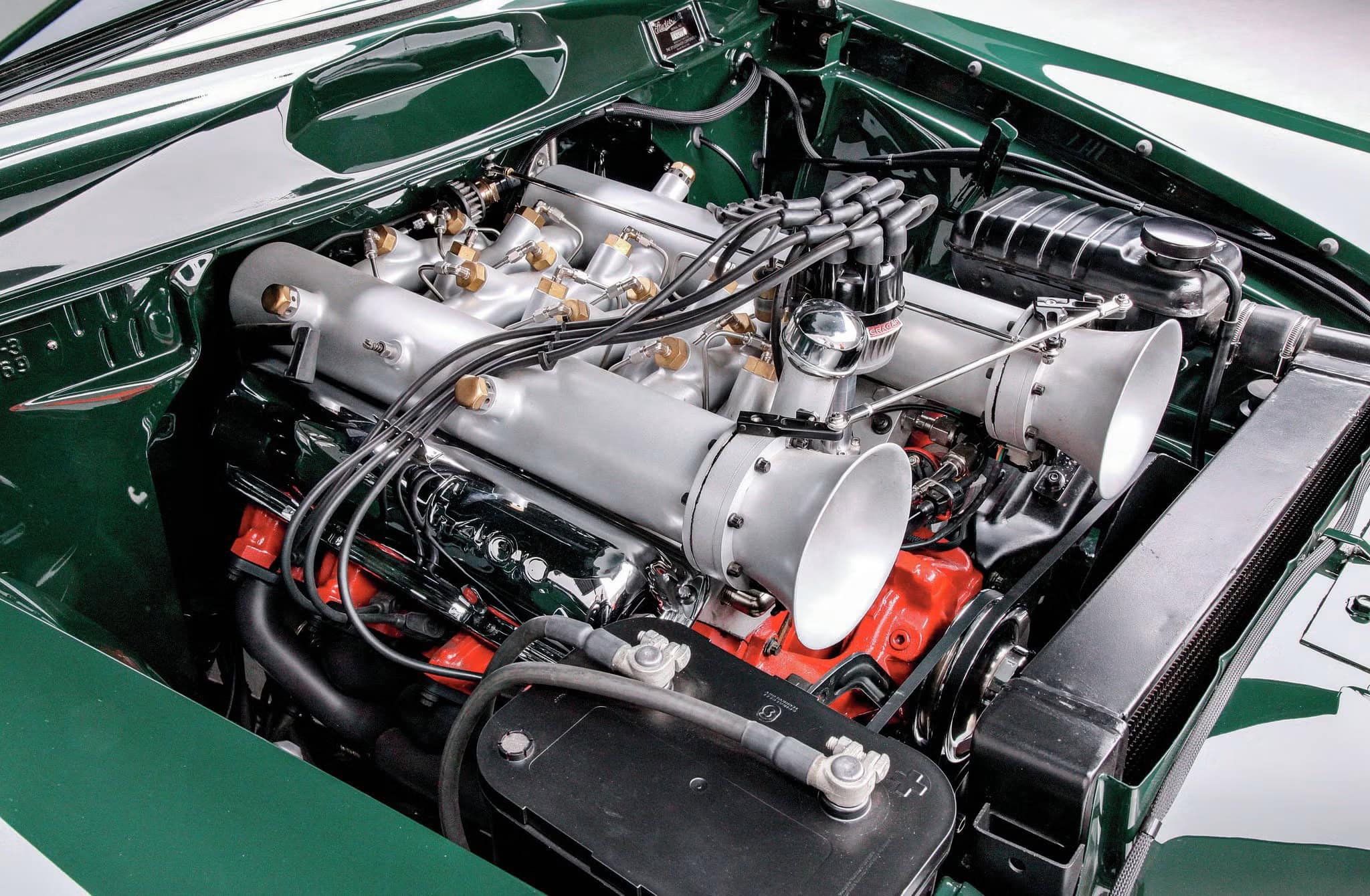 Ce système d’injection mécanique, avec ses corps d’admission à l’allure extravagante, était un prototype créé par “Propulsion Development Laboratories” dans les années’50. Tout le monde l’avait vu en couverture du magazine Hot Rod en 1959, et personne ne l’avait revu depuis. Le système était enfin opérationnel et alimentait un moteur V8 Ford 427 FE. A la demande de Dennis Varni, Dan Brewer, de Torrance en Californie, a réalisé l’assemblage du moteur et a adapté l’injection mécanique pour qu’elle fonctionne avec un système électronique Hilborn. Les culasses Edelbrock sont coiffées de cache-culbuteurs Edsel pour reproduire l’aspect du moteur de la couverture du magazine Hot Rod. Cette nouvelle configuration développait 410cv au banc d’essai. Un adaptateur a permis de coupler le moteur Ford sur une boîte de vitesses GM 700-R4. Comme c’était l’un des moteurs les plus rares et les plus atypiques que l’on puisse trouver dans un Hot Rod, Dennis Varni a flairé que cette bêtise pourrait se vendre 500.000 dollars a un illuminé…