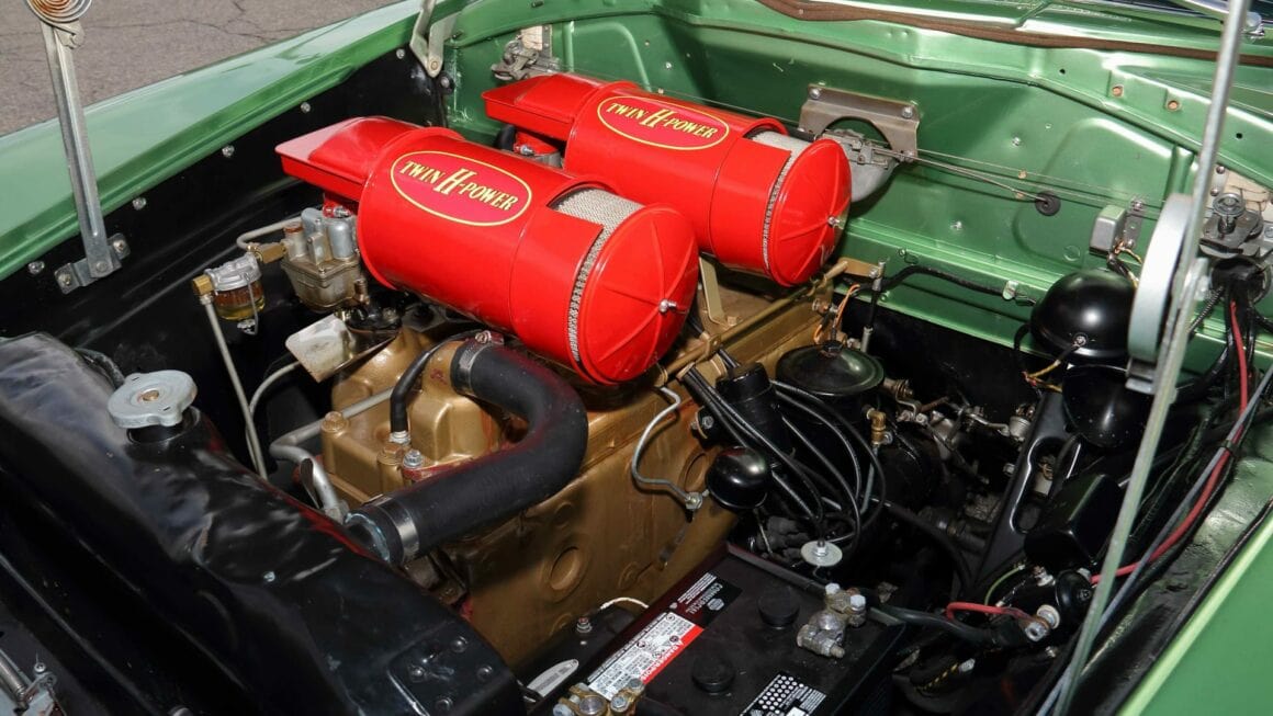 Forçant l’air froid à alimenter les carburateurs, le capot comportait une entrée d’air fonctionnelle qui était considérée comme une “ventilation”. Le moteur produisait 170 chevaux, mais pouvait être réglé pour générer 210 chevaux lorsqu’il recevait les modifications “7-X” introduites plus tard par Hudson. La transmission n’était que manuelle à 3 vitesses. 35.921 Hornet ont été produites durant l’année modèle 1952 et cela comprenait environ 2.160 Hardtops et seulement 360 cabriolets. Cette Hudson Hornet est une trouvaille incroyablement rare, car cette classique étonnante est considérée comme l’une des rares à exister encore dans le monde. Si vous souhaitez acquérir cette magnifique rareté, c’est trop tard !