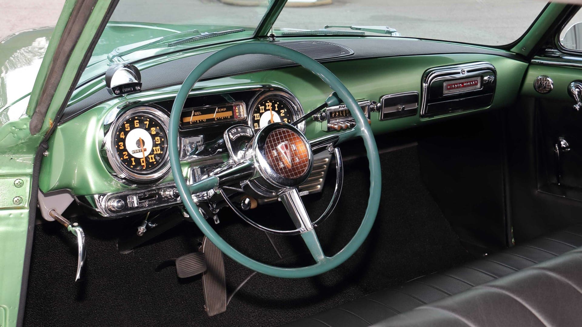 L’intérieur amélioré comportait des poignées d’assistance, des poches de dossier de siège sur mesure, des instruments de précision dans un boîtier chromé poli et une sellerie en tissu /vinyle. Disponible en berline quatre portes (2.568 $) et coupé Club à deux portes (2.543 $), cabriolet Brougham (3.099 $) et toit rigide Hollywood (2.869 $), la Hornet s’est vendue à 43.666 exemplaires la première année. Les berlines et les coupés ont gagné de nouvelles garnitures de vitres chromées et des garnitures latérales surélevées en 1952, ainsi qu’un double carburateur (Twin-H-Power) optionnel maintenant très convoité. Cette configuration améliorait le 308ci la respiration et l’efficacité du moteur à un meilleur de 160cv à 3800 t / min et 260 lb-pi. de couple à 1800 tr/min.
