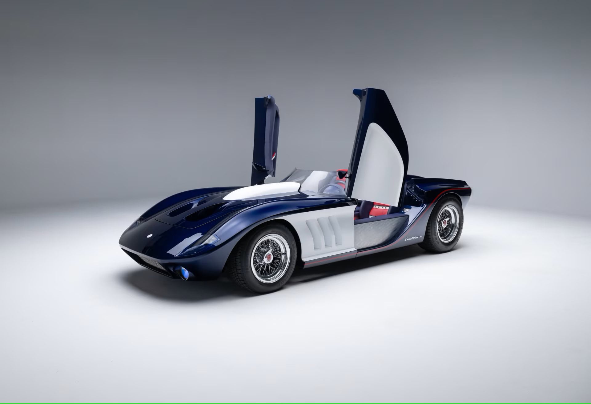 Les trois Excalibur-J de course ont finalement été placées au Musée que Brooks Stevens avait ouvert à Mequon, dans le Wisconsin. A Mequon, Wisconsin, le second fils William-Steve Stevens, était expert à l’administration quotidienne, tandis que l’aîné, David, était axé sur la conception et l’ingénierie (le plus jeune fils, Keith, était encore à l’école à cette époque). Brooks Stevens a continué en 1959 de concevoir des voitures extraordinaires, telle la fameuse Excalibur Hawk, un coupé très en avance sur son époque… et cela avec l’appoint de ses deux fils, David et William-Steve. Conçu pour être une machine de course exclusivement, le coupé Excalibur Hawk a été construit selon les idées de David Stevens…, la voiture, basée sur des composants de la Studebaker Hawk, utilisait son V8 289 ci suralimenté par un compresseur Paxton…, ainsi que sur la Shelby Cobra Daytona Coupé… Le style de la carrosserie a été voulu, volontairement, très agressif, affichant même des traits de conception très marquants.., qui seront copiés par Harley Earl sur la Corvette Sting Ray 1963 !!! L’Excalibur Hawk Coupé a été engagée en course, mais n’a jamais atteint le succès de sa devancière, l’Excalibur-J. Mais comme Kaiser-Frazer n’existait plus… et que Brooks Stevens était confronté chez Studebaker à des défis commerciaux importants, il a ainsi décidé d’utiliser toute la mécanique des Studebaker, ainsi que leur châssis… Une Excalibur Hawk Roadster a été conçue, mais jamais construite. Ce sont des modèles réduits des deux styles de carrosserie et surtout l’illustration d’une Excalibur Hawk Roadster montrée en dessin sur la couverture de février 1961 du magazine Motor Sports, qui a semé durablement la confusion dans les esprits…, car jusqu’au début des années 1990, l’Excalibur Hawk Roadster restait dans les mémoires.