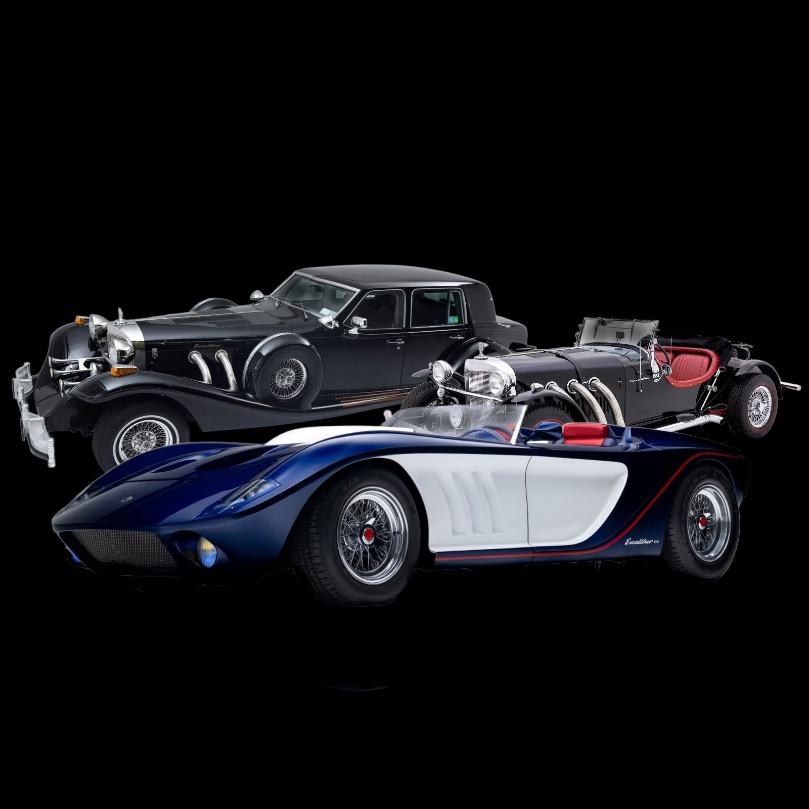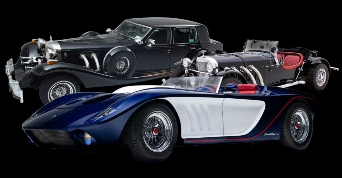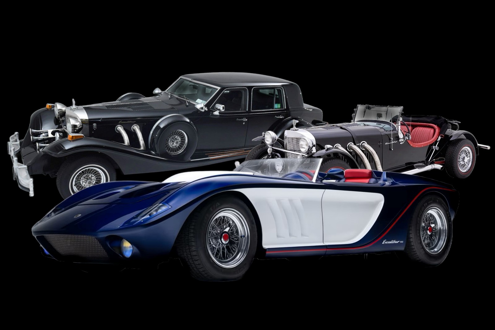 1958 Kaiser Henry J + 1959 Excalibur Hawk Coupé + 1985 Excalibur RS