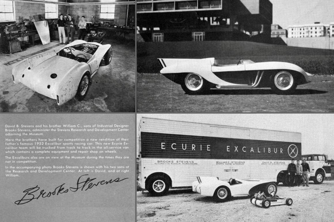 Brooks Stevens, natif de Milwaukee, Wisconsin, USA, un enfant du pays, comme on dit, était un designer qui eut un certain succès, surtout auprès de ses clients industriels qui utilisaient ses services pour concevoir des sécheuses, des bagages, des tondeuses à gazon, des trains, des bateaux et des voitures… Son nom est surtout resté associé à Studebaker, à Willys et surtout à Excalibur… Brooks Stevens était un personnage charismatique, très doué pour faire des déclarations inventives à ses clients à l’appui de ses dessins souvent flamboyants… Ses succès, furent toutefois, toujours obtenus avec excès…