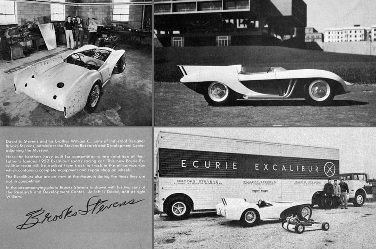 Brooks Stevens, cependant, était trop enthousiaste pour abandonner… et s’en alla de l’avant avec les trois voitures de course, décidé de continuer cette aventure en utilisant ses propres fonds, espérant que Henry J.Kaiser reviendrait finalement l’approuver. Quelques mois plus tard, en début 1954, la Kaiser-Fazer faisait faillite… Tout au long de 1954, l’Excalibur-J a continué d’impressionner les amateurs de courses automobiles, surtout qu’elles gagnaient haut la main contre des machines beaucoup plus puissantes comme les Ferrari…, Bob Gary a terminé quatrième au général (toutes catégories) en 1954 lors du Grand Prix du Wisconsin ! Ullrich aurait probablement terminé plus haut dans le classement, s’il n’avait pas été victime d’un accident durant le deuxième tour. Ensuite, jusqu’en 1958, les Excalibur-J ont généralement battu et défait à plate-couture, toutes les voitures en lice, sauf une paire de C-type Jaguar et une Frazer Nash…, mais les Excalibur-J ont vaincu toutes les Jaguar XK120s, les Amolt-Bristol… et les Ferrari…, excusez du peu… J’espère que les Ferraristes qui liront ceci, ou qui en seront informés (on peut toujours rêver, non ?), regarderont à l’avenir les Excalibur d’un autre œil… Les Excalibur-J ont continué de remporter des courses, impressionnant tout le monde et débutant ainsi la construction du mythe Excalibur…, Al Ullrich et Carl Haas ont même remporté la classe B de la “Road America 500” en 1958. À ce stade de succès, Brooks Stevens, comblé, couronné de lauriers, s’est retiré des courses (tout comme d’autres se rangent des voitures)…, notez qu’il était bien obligé de se retirer…, puisque l’usine Kaiser-Frazer avait fermé ses portes en 1954, tout en réalisant un geste ultime : lui offrir une quantité impressionnante de pièces d’Henry-J, des boîtes de vitesses surmultipliées, des moteurs complets et divers équipements.