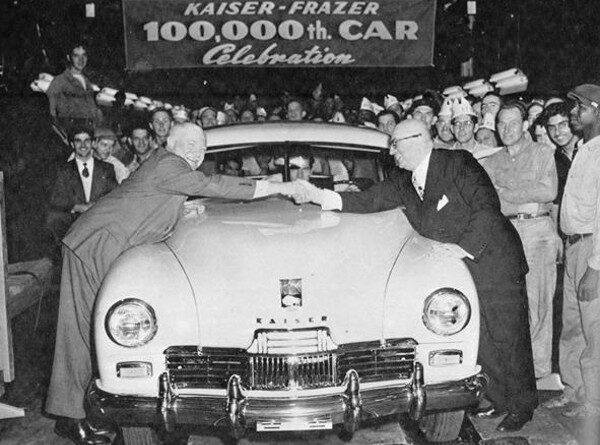 Brook Stevens à débuté avec Henry J.Kaiser qui auparavant avait réussi l’exploit de faire fabriquer des navires de transport “à la chaîne” durant la guerre (les fameux “Liberty ships” ), révolutionnant les méthodes de construction navale et contribuant ainsi à assurer la victoire aux Etats-Unis. Henry Kaiser est résumé comme éternellement sûr de lui, impavide, d’une courtoisie extrême, ne se laissant jamais démonter “l’homme au sourire” comme le surnommera la presse, n’hésitera jamais à relever un défi, fût-il totalement insensé en apparence, il ira ainsi jusqu’à proposer après guerre de fabriquer des avions et des automobiles en kit, anticipant largement sur la construction modulaire. “Cet homme a des doigts d’or” dira de lui Winston Churchill,ajoutant : “Sans les incessants convois de Liberty ships fendant jour après jour les flots entre l’Amérique et la Grande-Bretagne, la guerre aurait bien pu être perdue”… L’hommage vaut son pesant d’or… La vie et la carrière du père des “Liberty ships” concentrent tous les ingrédients du mythe du “self made man”.