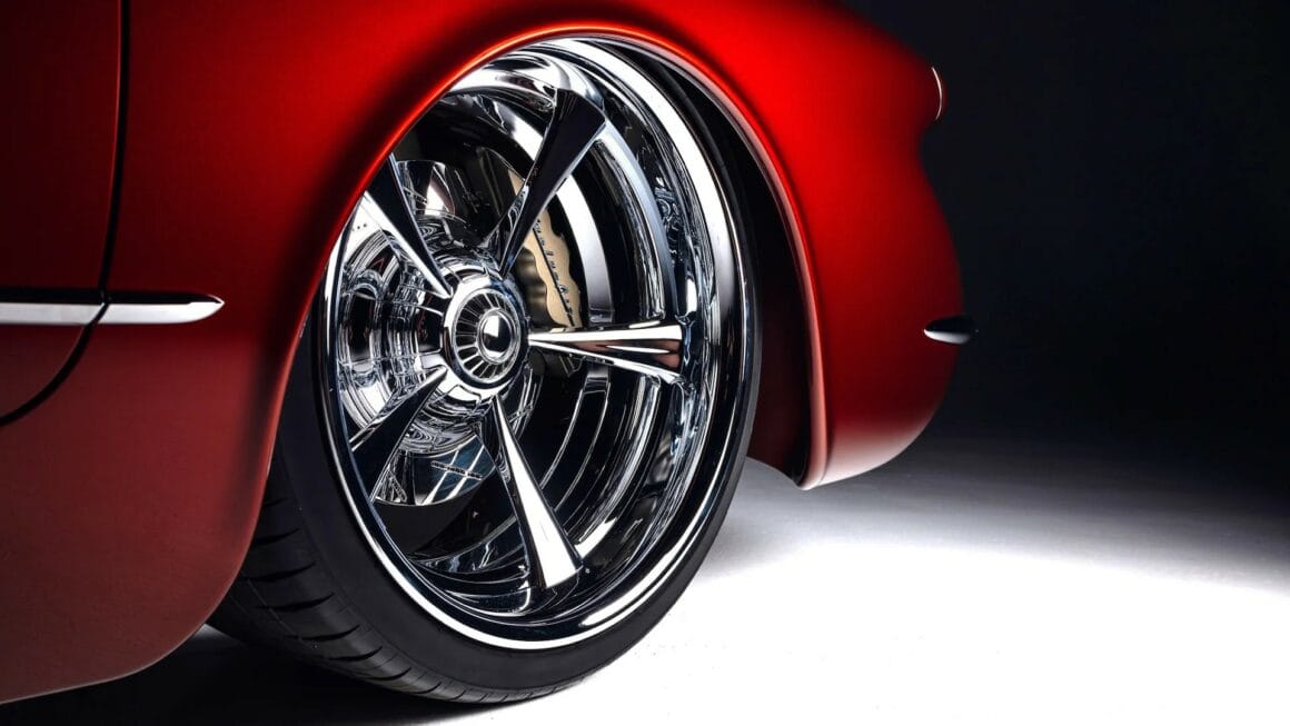 Les étriers Wilwood ont été rasés et refinis, et des logos TwelveAir chromés ont été ajoutés. Les freins, qui comprenent des rotors en acier inoxydable usinés sur mesure avec les chapeaux intégrés dans les roues, résident dans un ensemble de jantes uniques Monolug à cinq rayons de 19 x 8po AV et 20 x 12 po AR qui ont été conçues par Dave et usinées par EVOD Industries, qui a également fabriqué des centaines de pièces pour le projet sur la base des conceptions de Dave. Chaque boulon de la voiture a été usiné sur mesure et même les pneus ont été réalisés “sur mesure” par Black Diamond Classics.