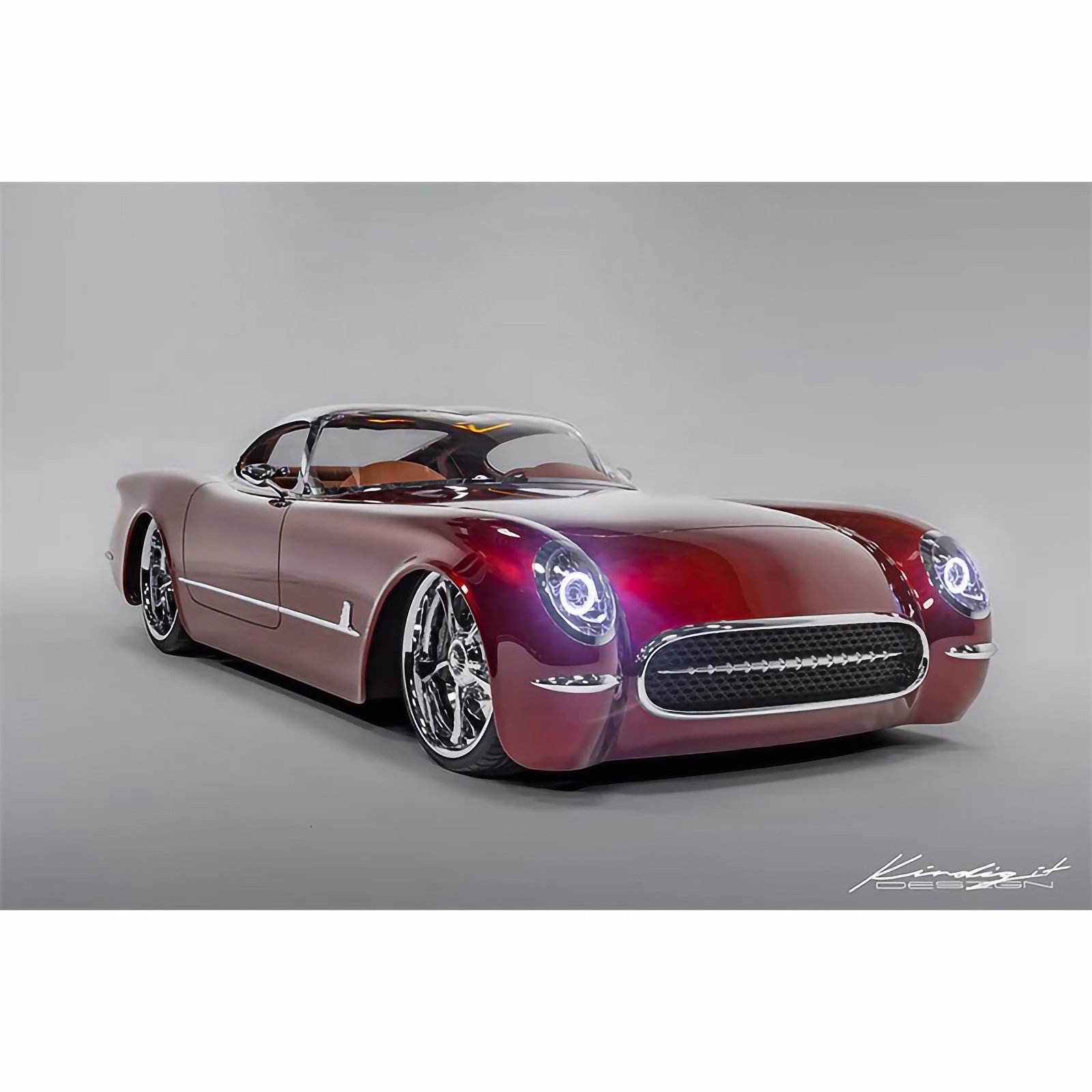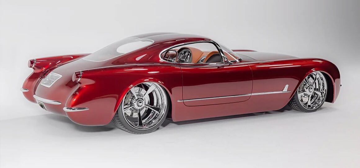 Lui aussi fait partie du groupe… Puis le gagnant est sélectionné parmi ce club exclusif. Pour 2024, la voiture gagnante a été cette imitation de Corvette’53, conçue par Dave Kindig et fabriquée chez Kindig-It Design à Salt Lake City, dans l’Utah, pour les propriétaires bailleurs des fonds financiers Dave et Tracey Maxwell, des milliardaires désignés comme étant généreux… Bien sûr, “Corvette 1953” devrait être mis entre guillemets, car aucune pièce d’une Corvette 1953 réelle n’a été utilisée pour cette construction. Au lieu de cela, chaque pièce a été construite à la main ou fabriquée spécifiquement.