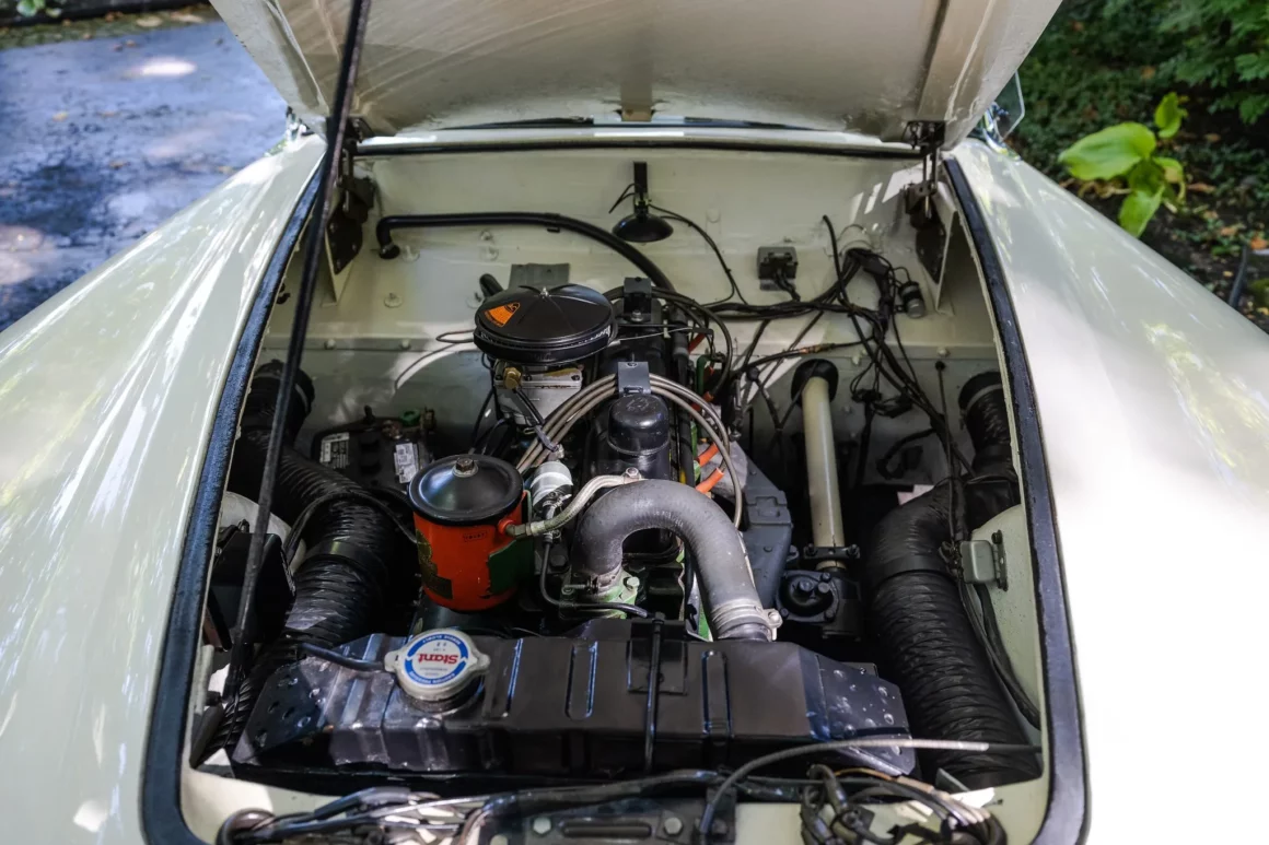 La place dévolue à la motorisation est restreinte due à un budget particulièrement limité. Si au départ le désir d’un V8 puissant devait être acheté à Oldsmobile, il a vite été délaissé au désavantage d’un 6 cylindres riquiqui quelque peu dommageable à l’image, repris du moteur Willys type 161ci 2L6 développant 90cv !… En fin d’année après le départ de Kaiser dégouté du résultat obtenu, Darrin avait pris l’initiative d’une version “supercharged” pour sa voiture : un V8 Cadillac de 304 chevaux installé majestueusement sous le capot. La voiture atteignait dès lors 225 km/h, bien mieux que les 156 km/h en standard. Avec un prix de 3.668 $, la Kaiser Darrin dépassait allègrement les tarifs des divisions luxueuses des Big Three. Avec le Big Block, elle s’affichait encore plus onéreusement à 4.350 $.