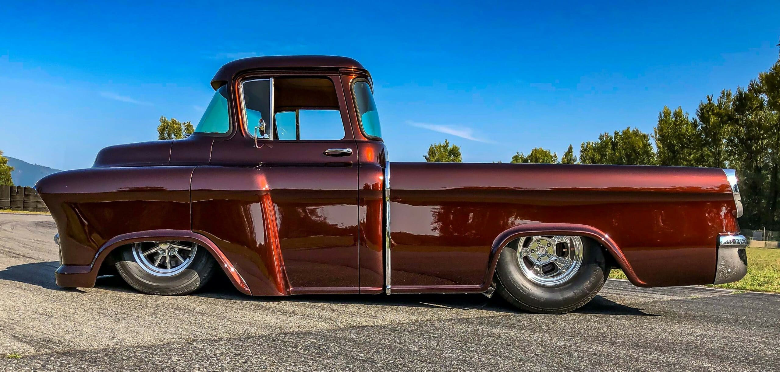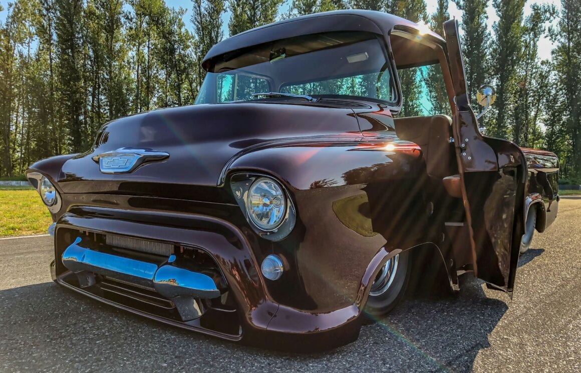 Nous avons tous passé beaucoup de temps dans les salons de l’automobile, ou debout au soleil ou sous la pluie (Champs-Elysées patataboum), à regarder un autre Chevy 210 personnalisé. Ne vous méprenez pas, les 210 sont cool. Mais combien de fois avez-vous été dans un show-and-shine et vous êtes-vous tenu à côté d’une Chevrolet Snub Nose Cab Over Cameo de 1955 personnalisée ? Jamais ? Tout simplement parce qu’il n’y a rien de tel en France ni en Europe parce que c’est Américain et Canadien exclusivement… Eh bien, si vous vous trouvez à Nanaimo, en Colombie-Britannique, au Canada, vous pourriez vous retrouver devant le remorqueur de Darren Hoffman ou (Lil’ Tug) qui a créé un Camion Pick-up, totalement dingue nommé Chevy Snub Nose Cameo, catalogué 1955. Chaque centimètre de ce camion a été modifié. Le parcours de cet engin est passé du statut de camion commercial à celui de Camion Hot Rod, et a été long, passant par différents propriétaires, des projets à moitié achevés et deux pays différents.