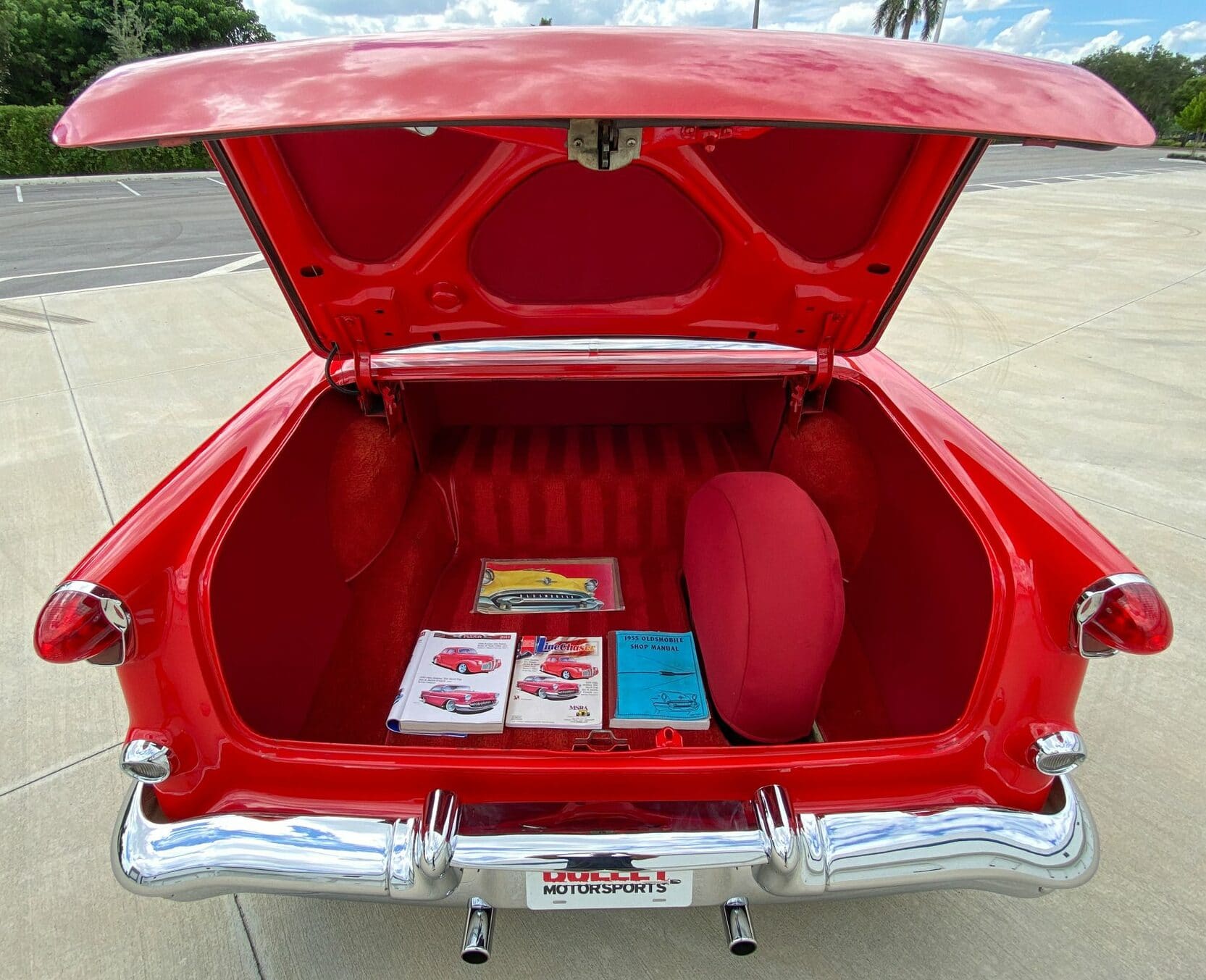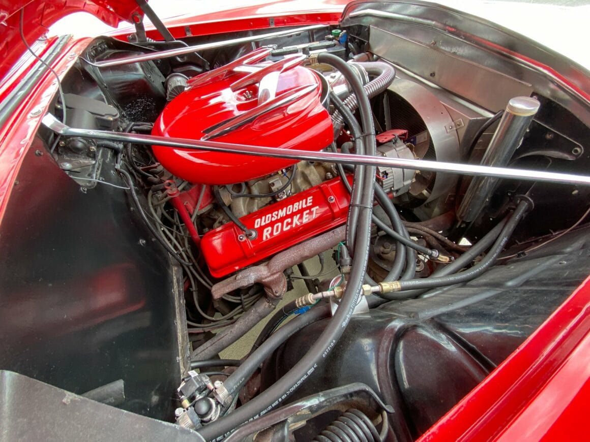 Les garnitures de carrosserie ont également servi de points de rupture de peinture pour certains des schémas bicolores disponibles. Les mises à jour arrière ont été limitées à un nouveau pare-chocs et à de nouveaux feux arrière. Avec des looks go-fast et un marketing basé sur la fusée, il était essentiel de fournir de la puissance sous le capot pour sauvegarder les vantardises. Bien sûr, Oldsmobile a également excellé dans ce domaine. Son 304ci V-8 avait en effet impressionné le public avec ses soupapes en tête et sa puissance de 135 chevaux.