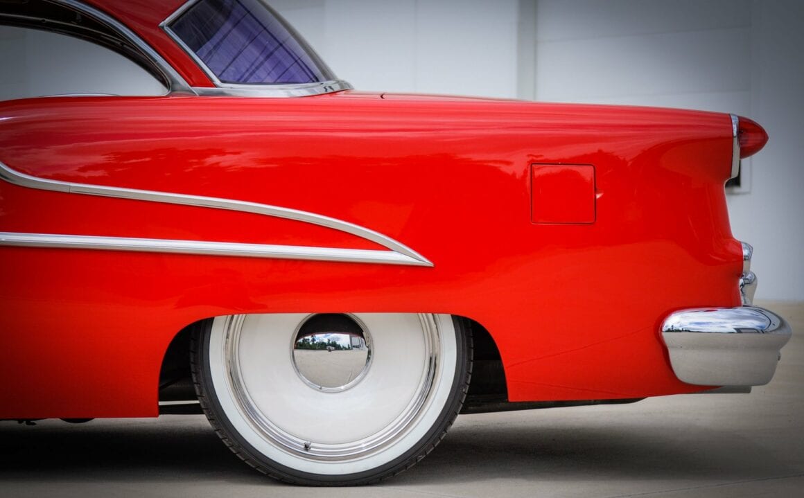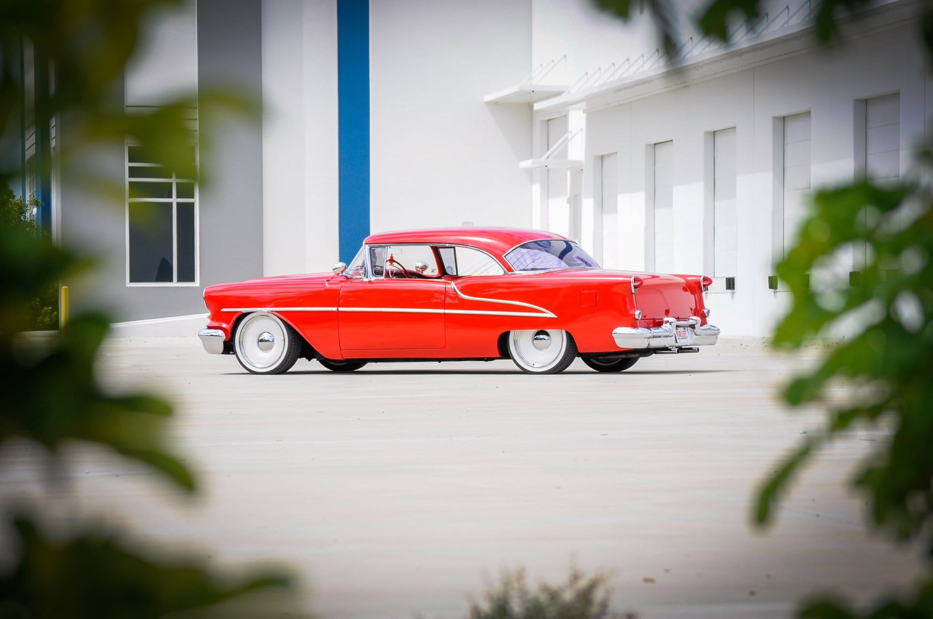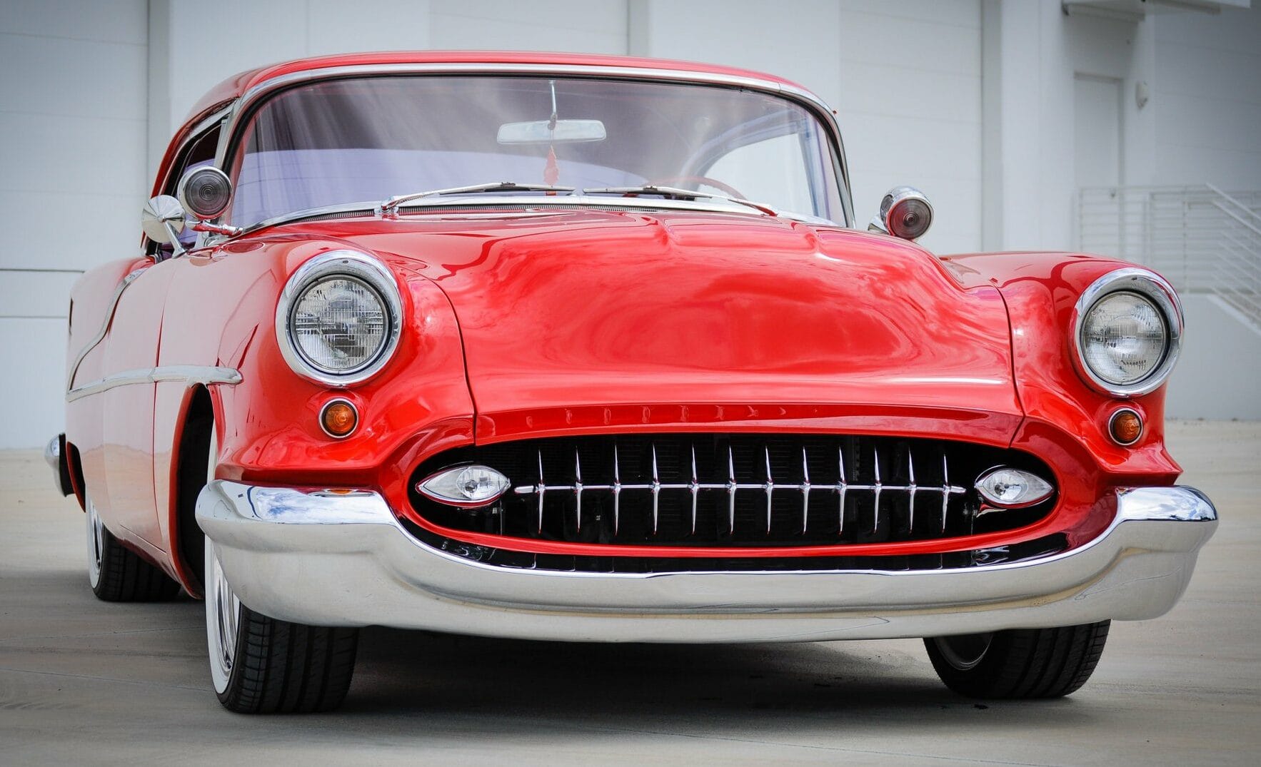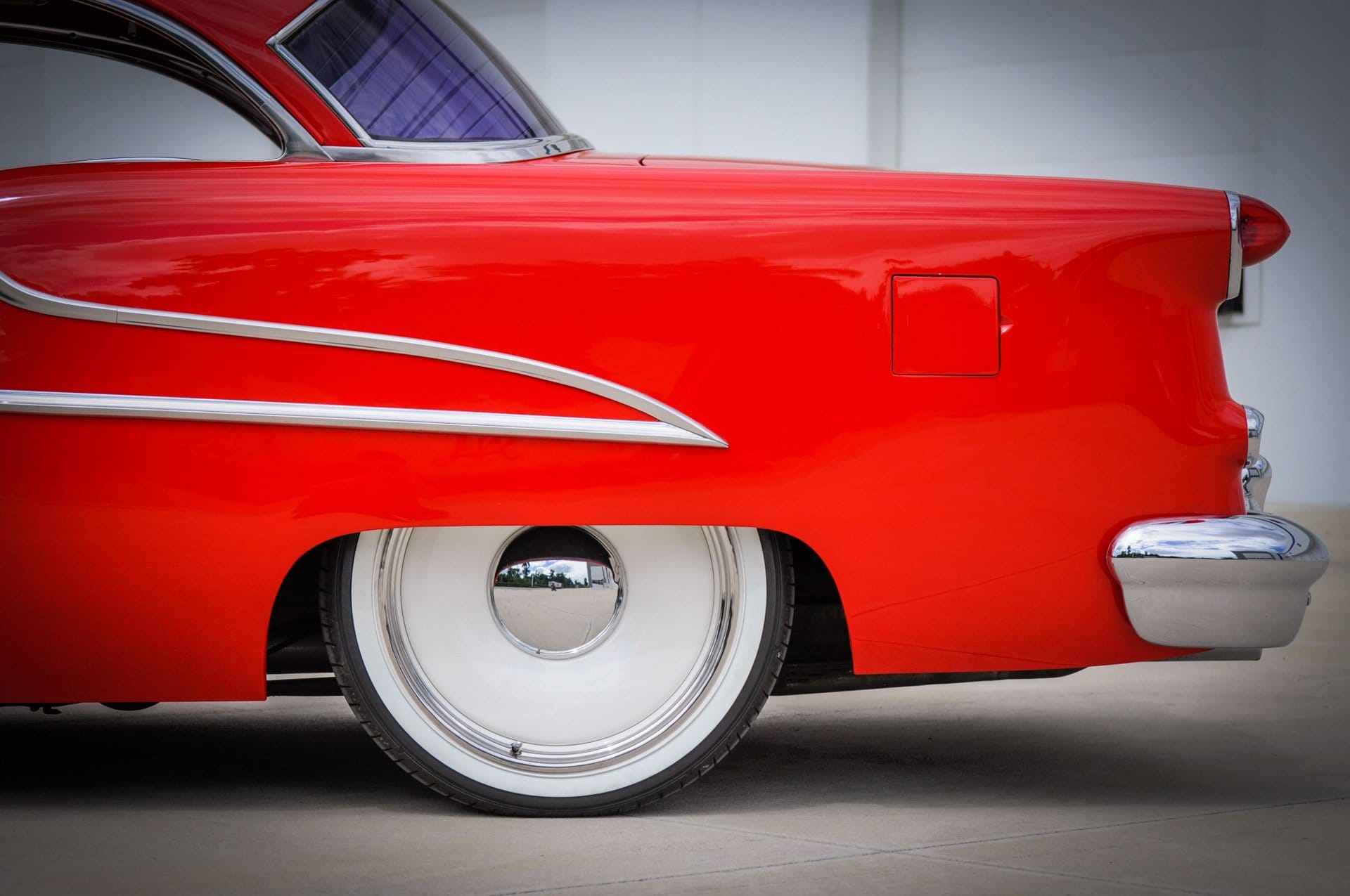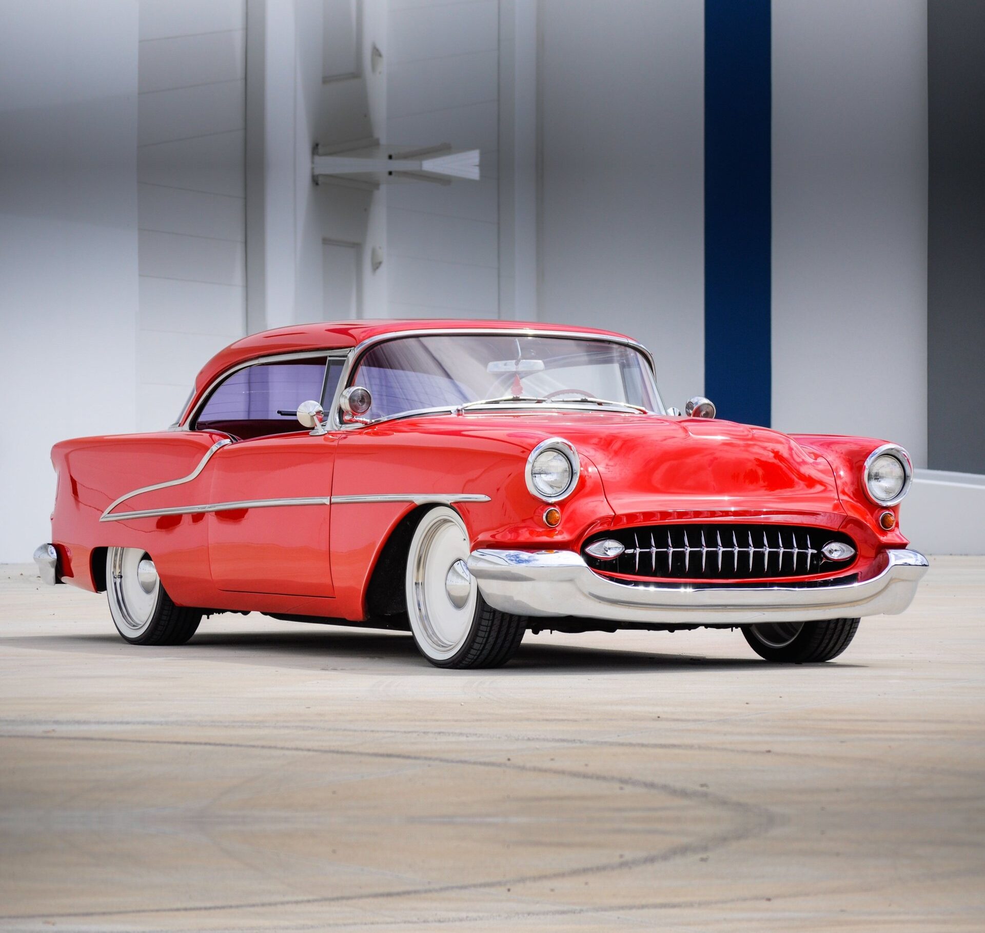 Mais lors de son introduction pour les modèles de 1949, est passé à 324ci pour 1954 et a reçu des améliorations “respiratoires” haut de gamme pour augmenter la puissance à 185 chevaux avec le Quadri-Jet à 4 corps. Pour 1955, un taux de compression plus élevé de 8,5: 1, une came de levage hydraulique plus élevée et des chambres de combustion améliorées ont augmenté la puissance nominale du quatre corps, 324ci. moteur à 202 chevaux. Faut maintenant passer à l’histoire perso… Big Mike n’était pas prêt à vendre, il avait hérité de l’Oldsmobile à faible kilométrage de son beau-père, et il voulait la garder.