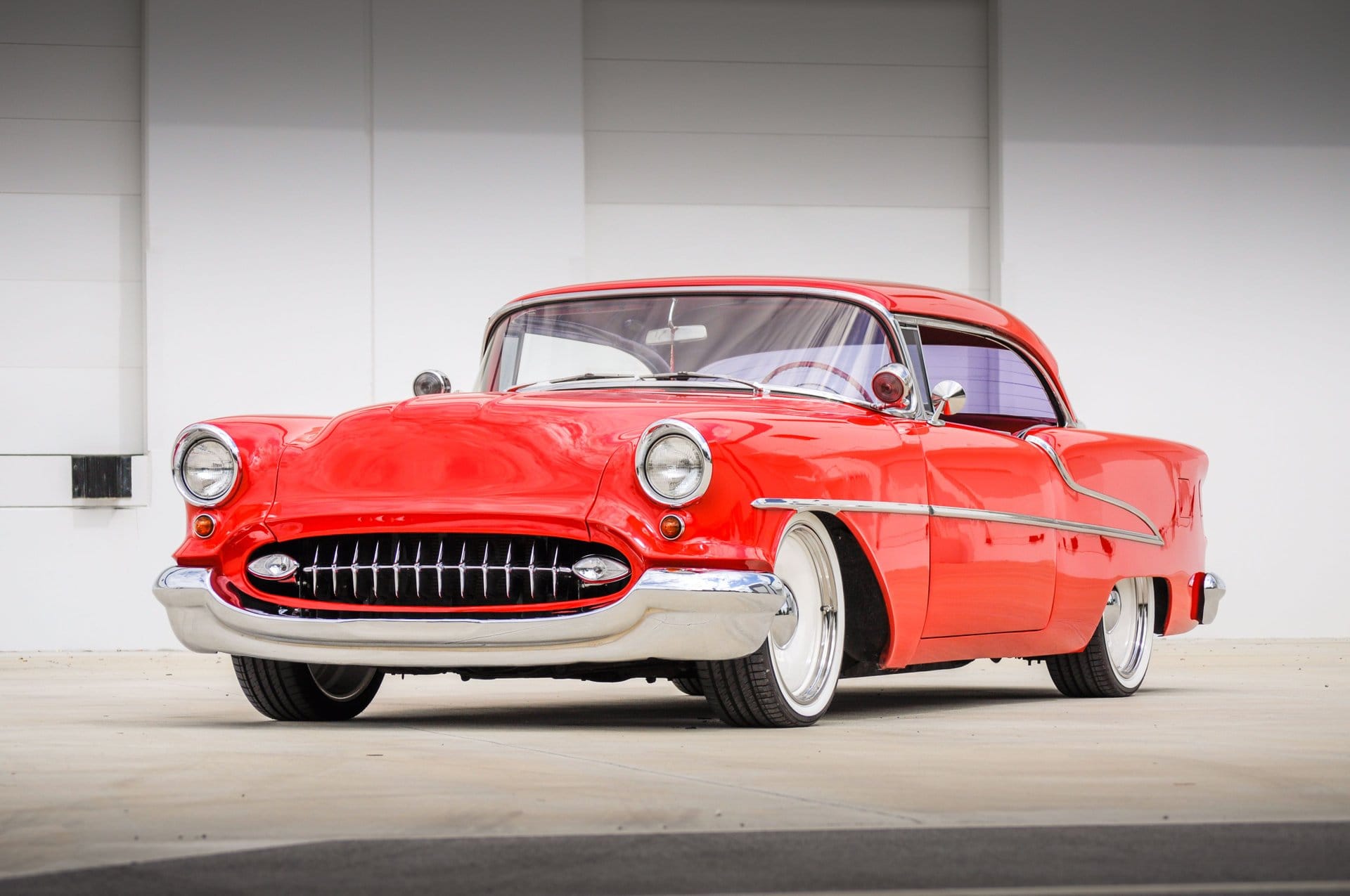 Au cours de l’année 1955, de nouveaux records de ventes ont été atteints pour l’industrie automobile américaine et particulièrement pour Oldsmobile, qui dureront pendant une décennie. Il y eut en effet une large acceptation par le public des modèles de style “Go Ahead” bien aménagés, qui ont été renforcés par l’excellent 324ci Rocket V8 à soupapes en tête. La production à atteint 583.179 voitures ! Oldsmobile proposait les séries 88 et Super 88 sur un empattement de 122 pouces et la Ninety-Eight sur un empattement de 126 pouces.
