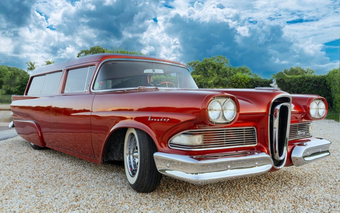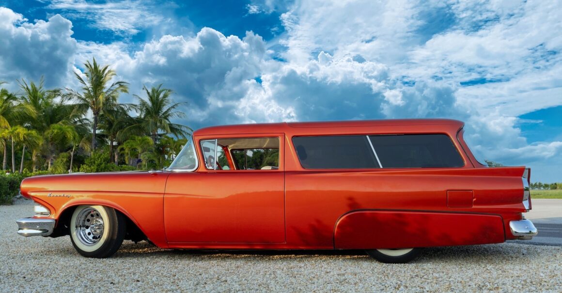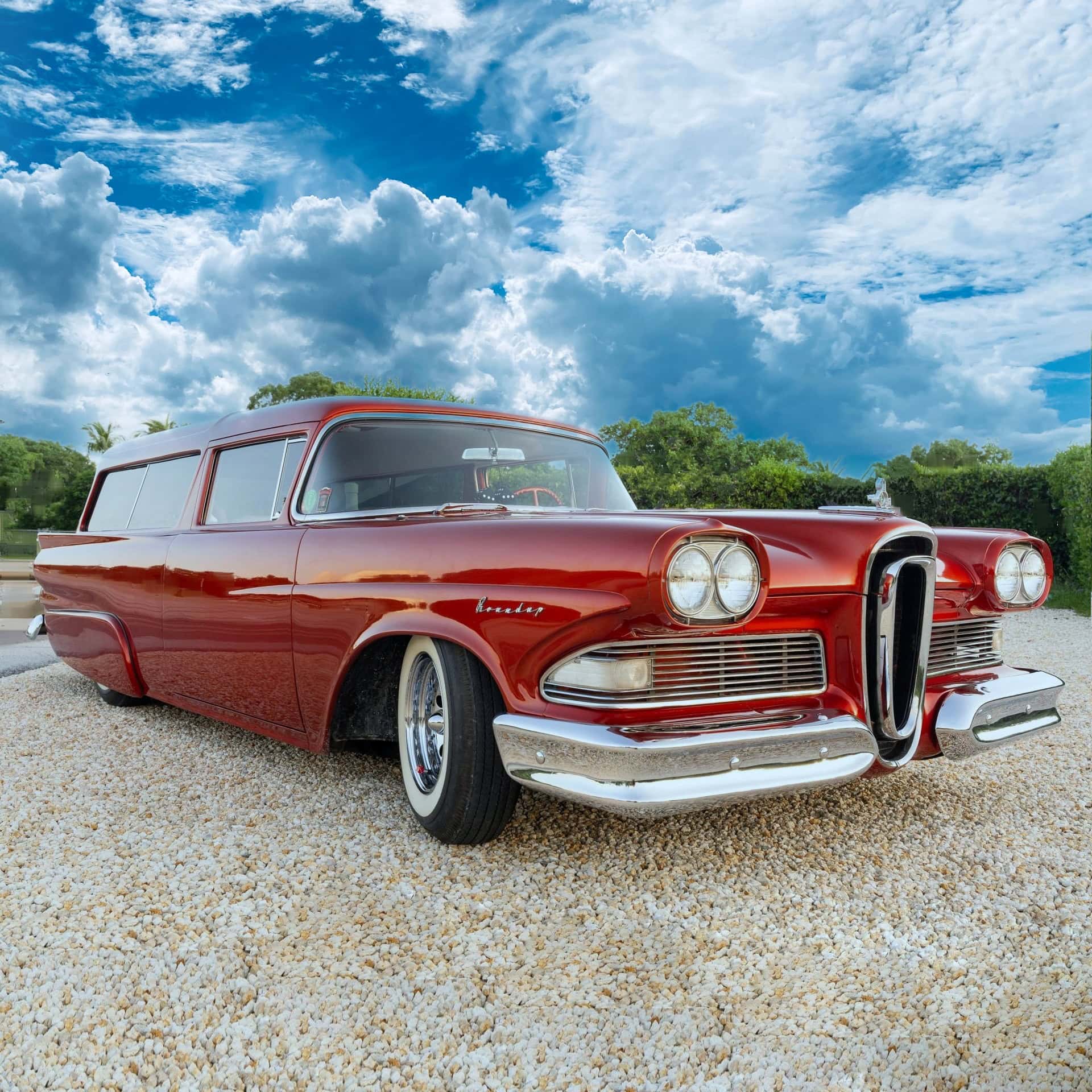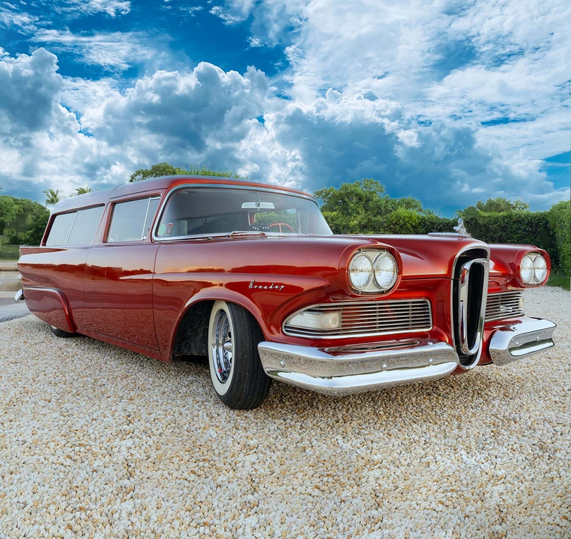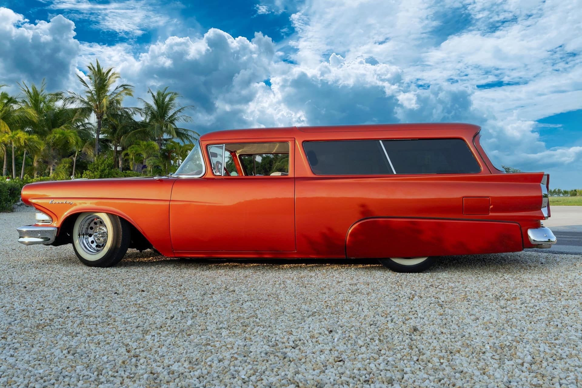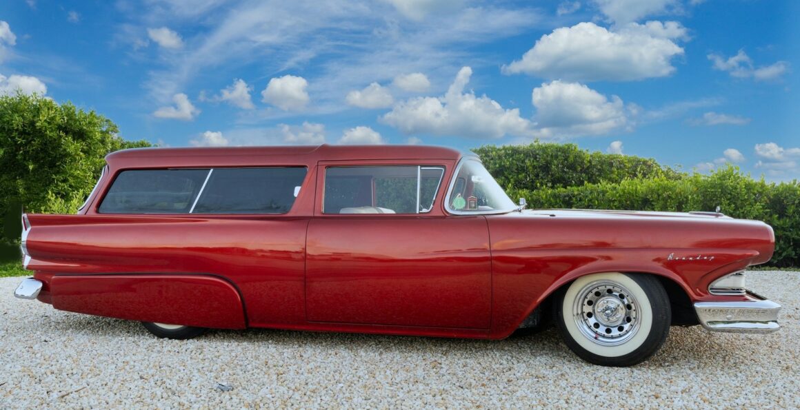 L’échec d’Edsel a coûté 250 millions de dollars à Ford… Chaque Edsel vendue coutait donc 260.000 $ à Ford… Yeahhhhhh ! C’est donc une rareté jamais publiée et qu’on n’a vue nulle-part… Cette Edsel Roundup Station Wagon 1958 deux portes/six places est l’une des 963 construites, a également un lien avec le légendaire customiseur George Barris, qui était un ami et un collaborateur du constructeur de la voiture, Frank Monteleone qui a œuvré avec lui à la construction de diverses Ford personnalisées…