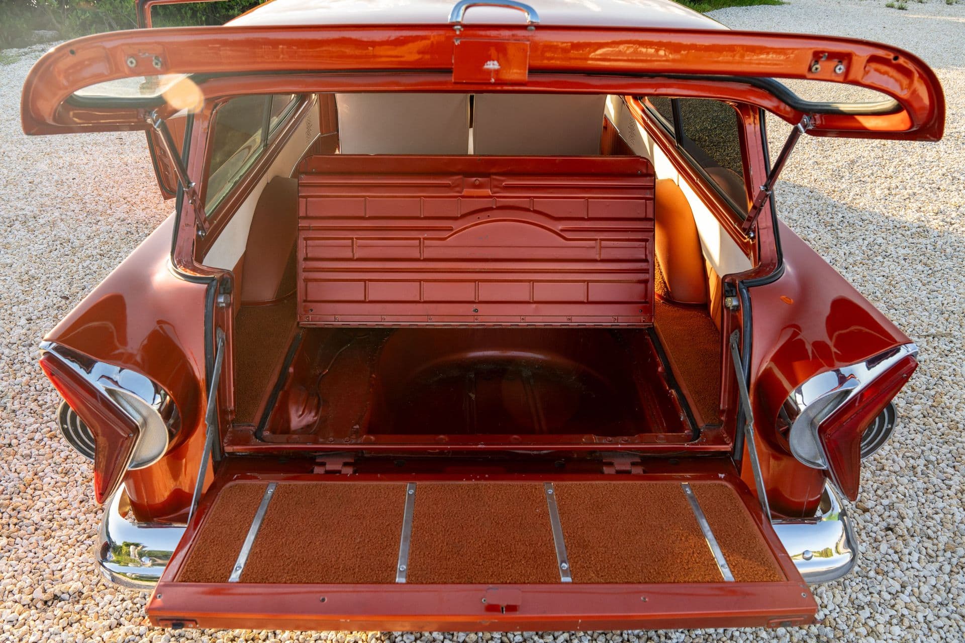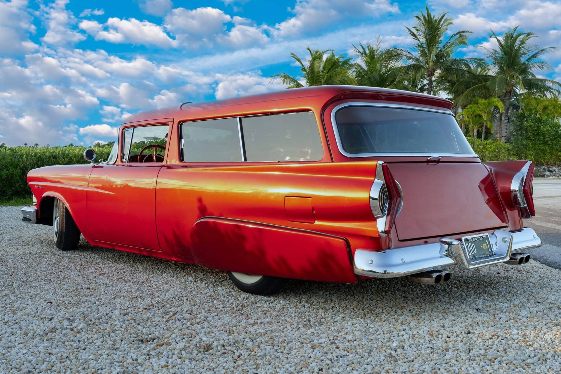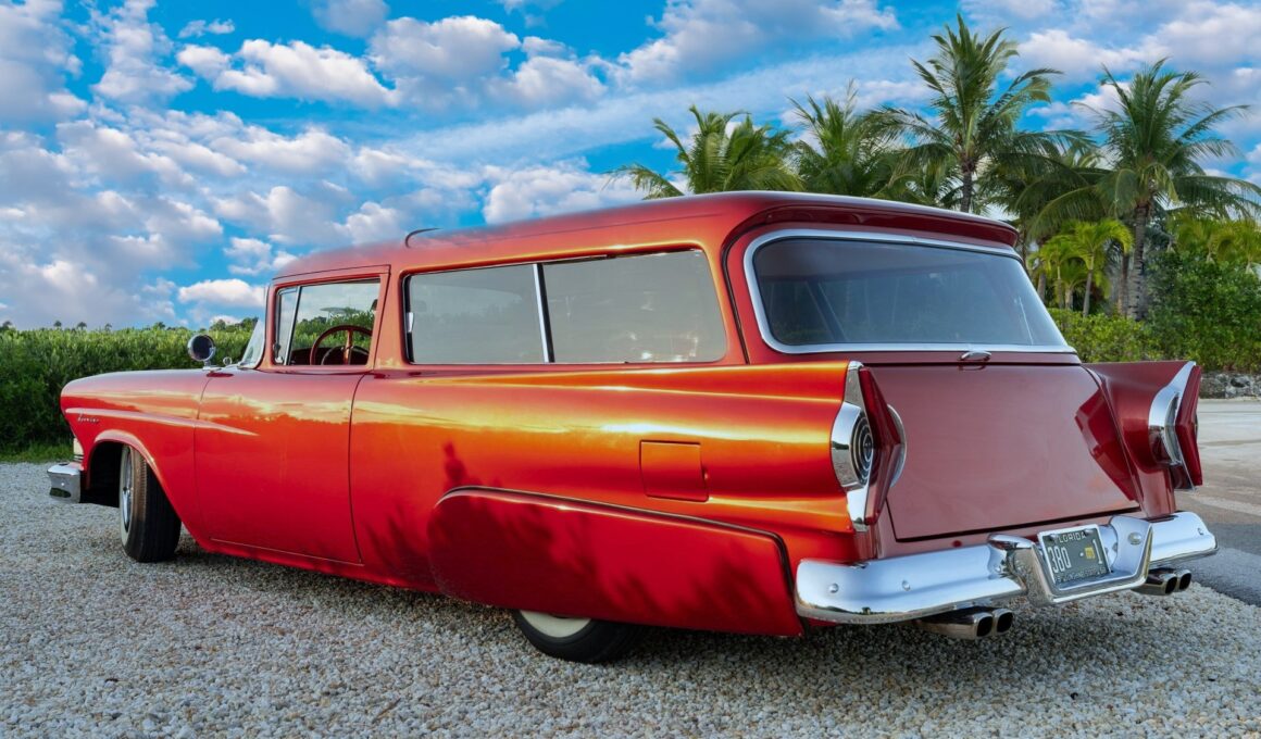 Définie selon les documents officiels comme une 1958 Edsel Roundup, châssis W8US732653, couleur Hot Lava Orange, moteur V8 410ci 480cv qui démarre bien, sans fumée ni fuite. de même, la transmission manuelle à trois vitesses “change bien” car ce Kustom fonctionne aussi bien qu’il en a l’air… La peinture accrocheuse s’appelle Hot Lava, elle a l’air orange ou cuivrée selon la lumière ou les photos. La carrosserie n’a pas été profondément modifiée, Georges Barris l’ayant définie comme exceptionnelle d’usine.