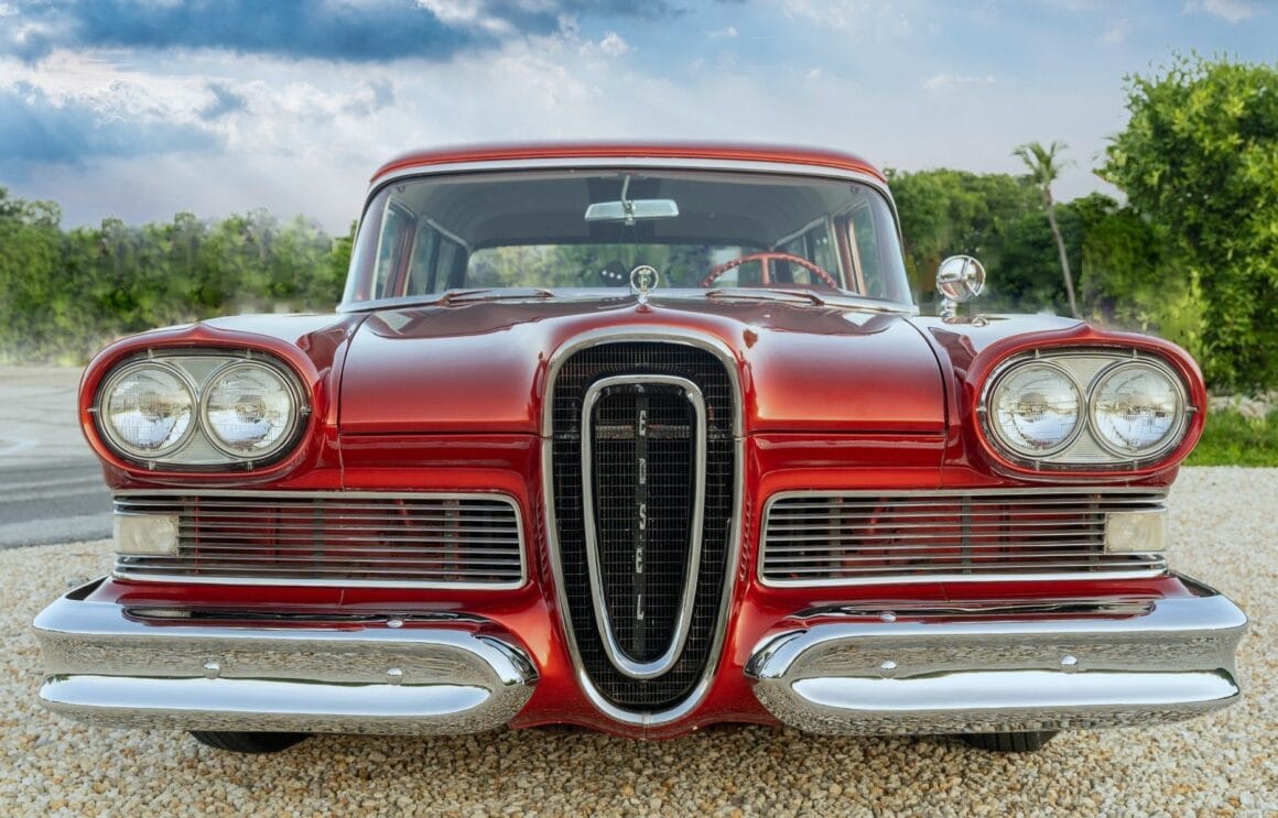 Les feux arrière uniques en forme de boomerang étaient volontairement atypiques. Leur forme posait un problème lorsqu’ils étaient utilisés comme clignotants car le feu arrière gauche apparaissait comme une flèche pointant vers la droite et vice versa. Les acheteurs avaient la possibilité d’une boite de transmission manuelle ou automatique à trois rapport avec un sélecteur de vitesse monté sur la colonne de direction, ils pouvaient choisir aussi la boîte automatique Teletouch d’Edsel, très “Up To Date” mais sujette aux problèmes, qui plaçait ses boutons de sélection de conduite dans le moyeu du volant.